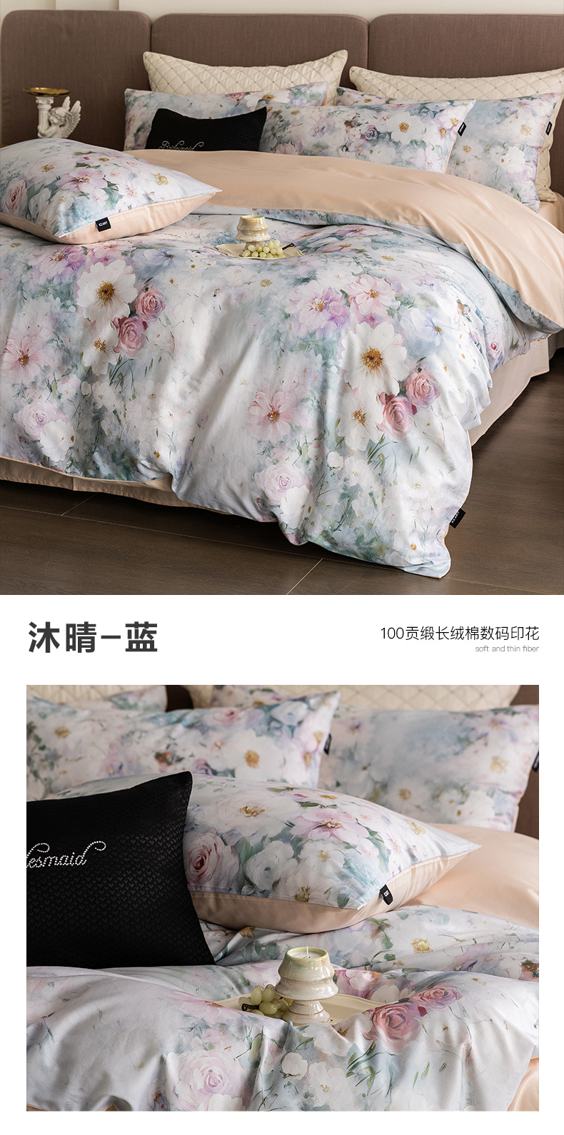 (总)佳汐蓝家纺 2025新款春夏新品TENCEL兰精天丝四件套绣花系列,花颜如梦·珍珠粉,花颜如梦·珍珠绿
