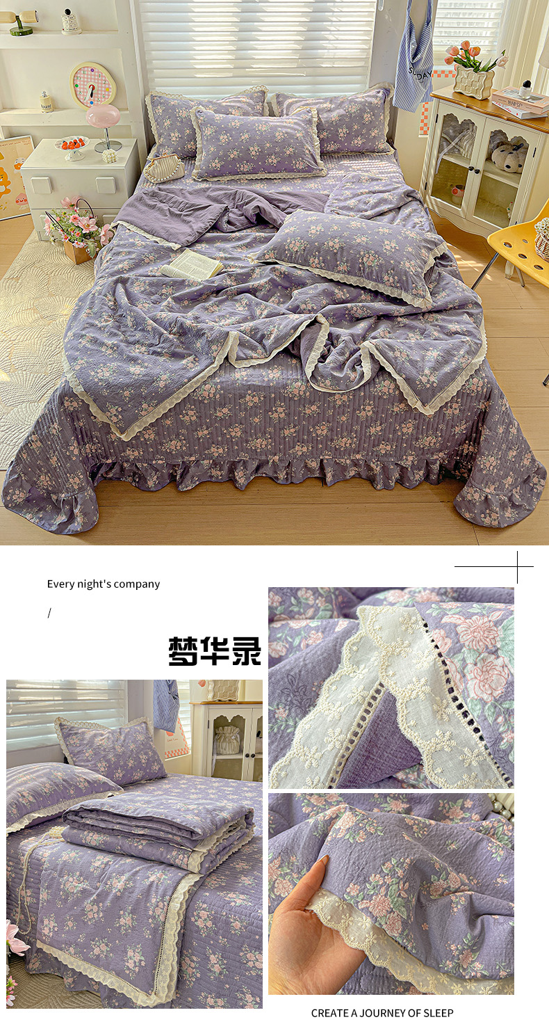 当前位置: 91家纺网 > 商品网购 > 床品套件 > 四件套 > 夏被四件套 > 富米莱(原臻工厂) 2025新款云感亲肤棉床盖床裙夏凉被四件套-全棉镂空花边 梦华录