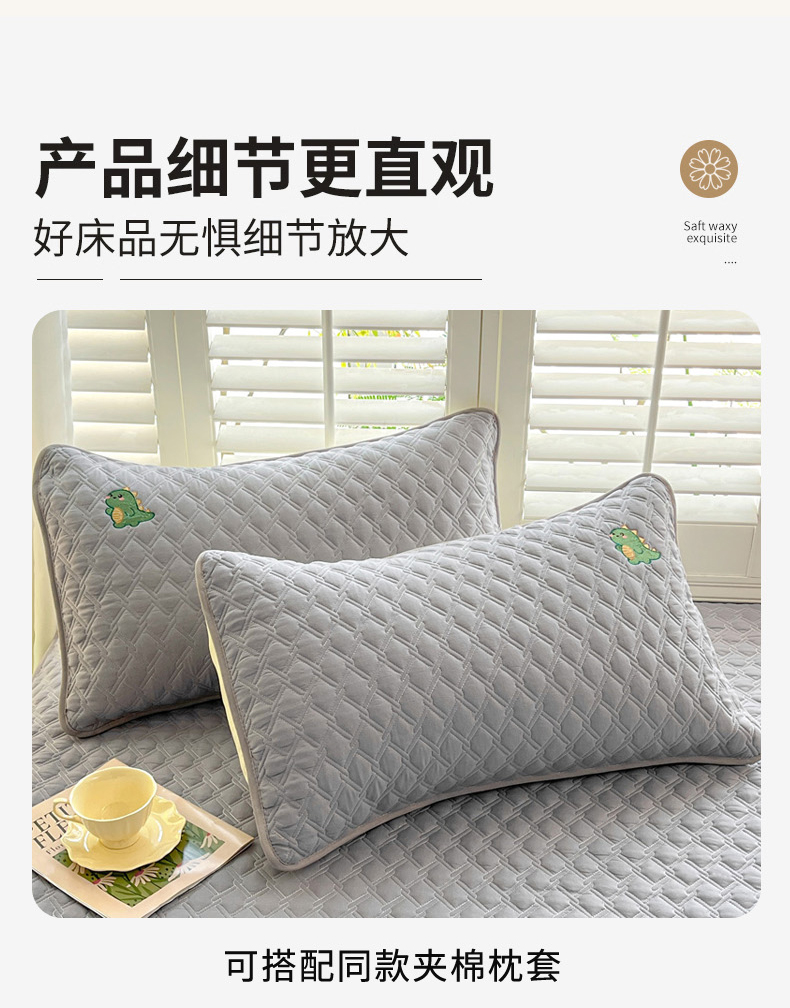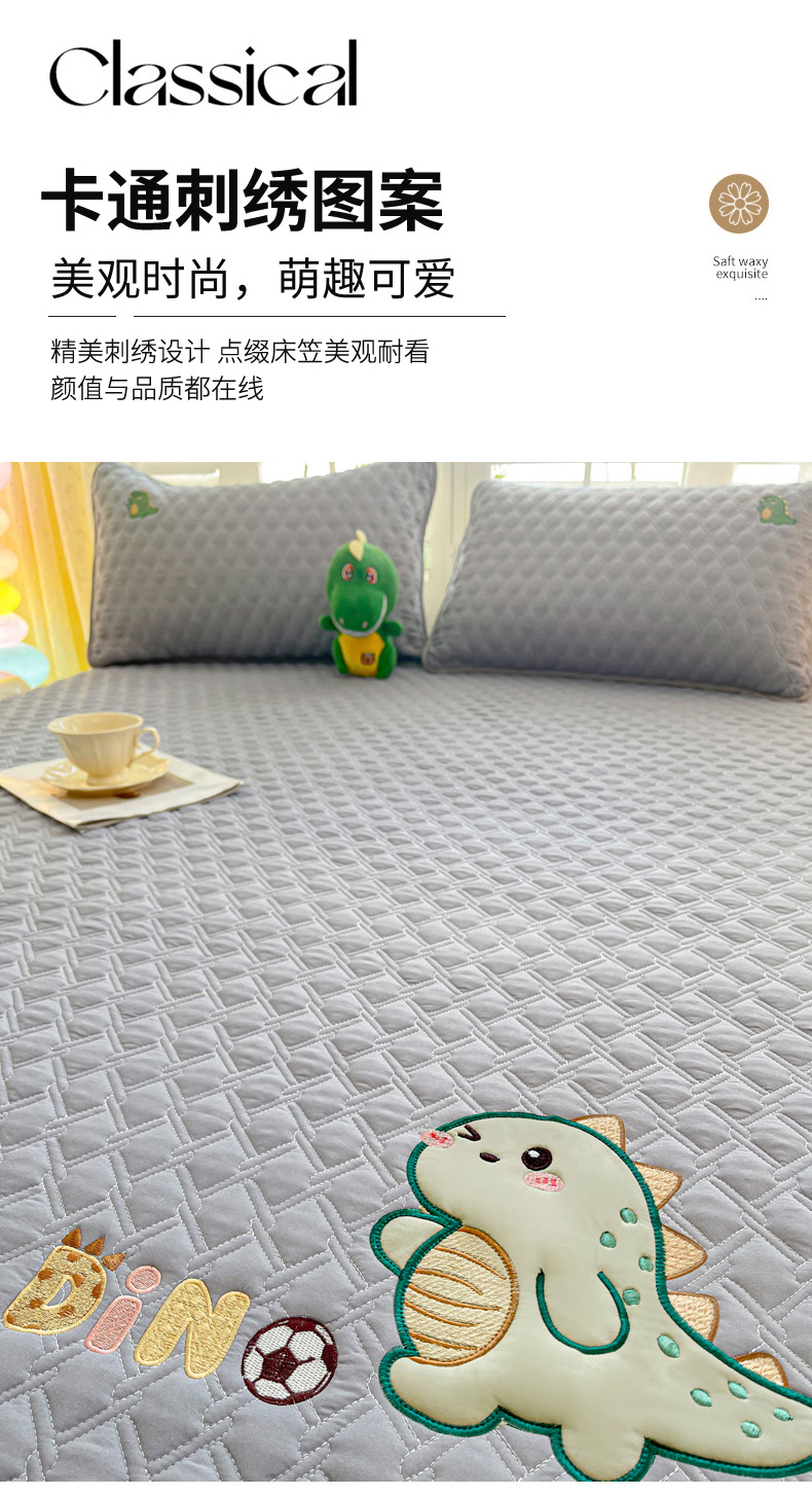商品名称:万盛家纺 2025新款夹棉恐龙刺绣床笠 恐龙-菱形格 灰