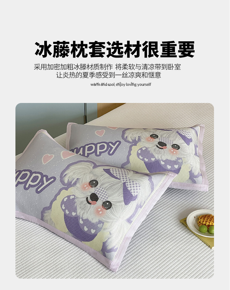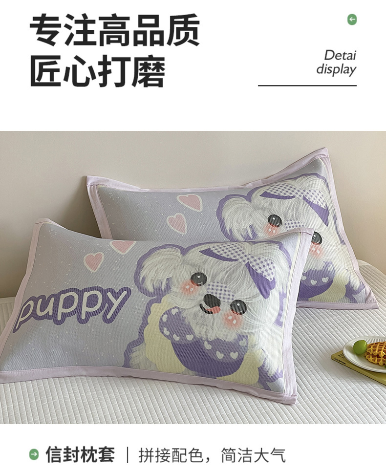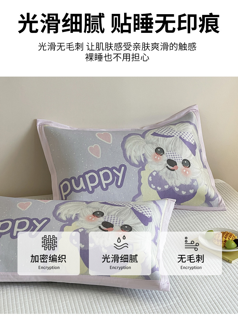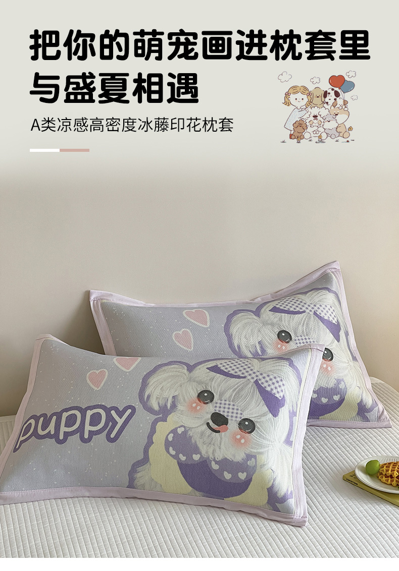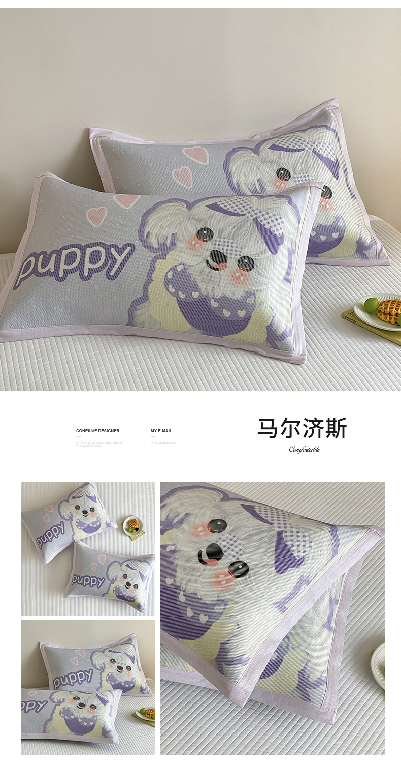商品名称:安哆啦家纺 2025新款A类大版印花冰藤儿童幼儿园卡通萌宠系列凉席单枕套 马尔济斯