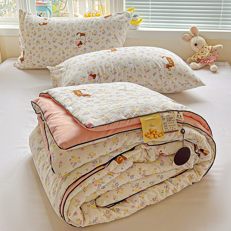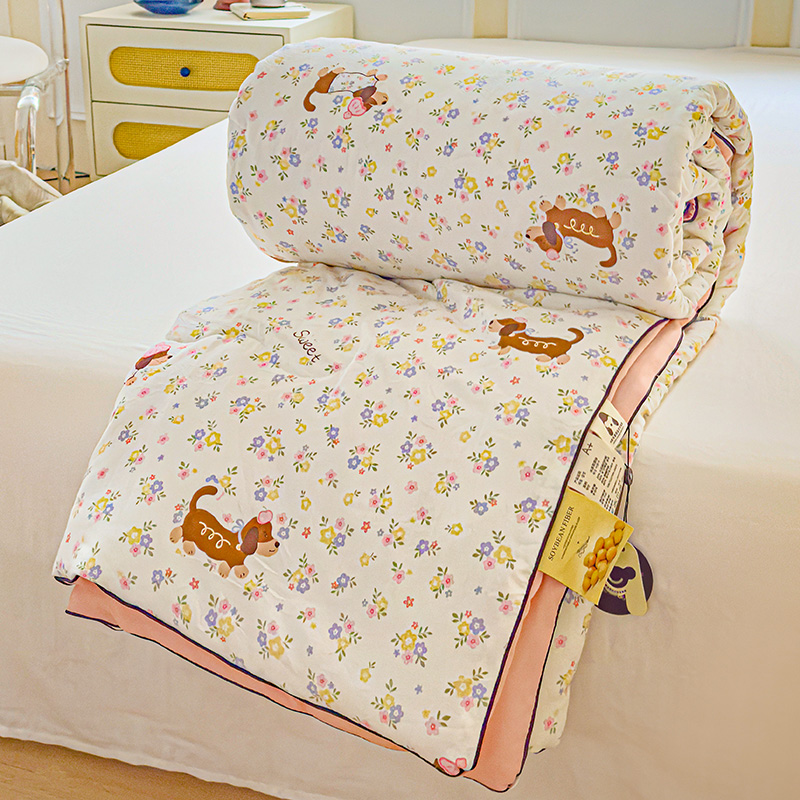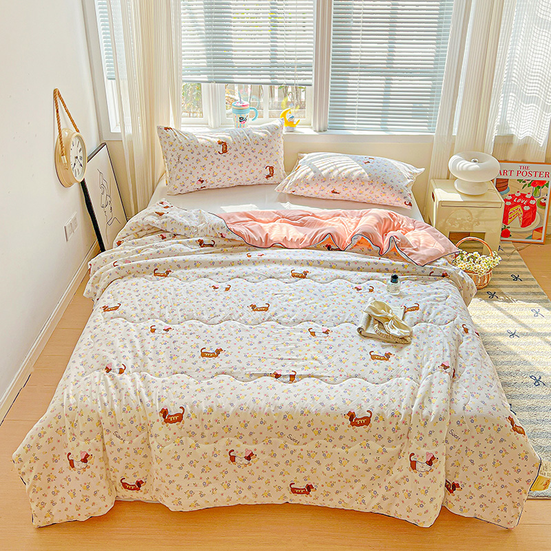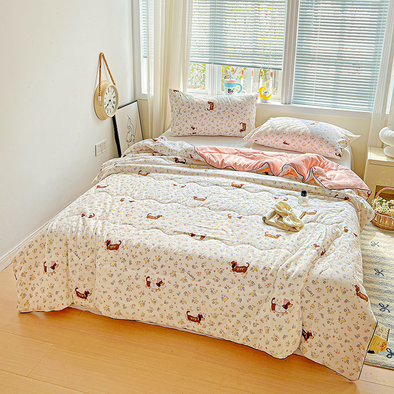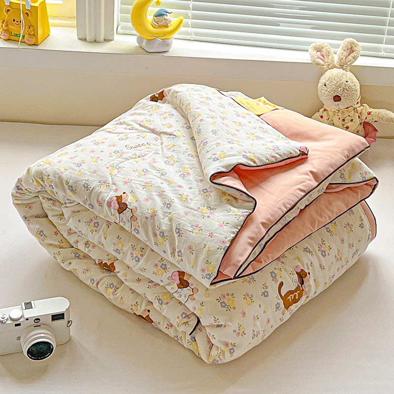 玉海棠家纺 2025新款水洗皱皱纱印花夏被 被子被芯 小狗恋雨