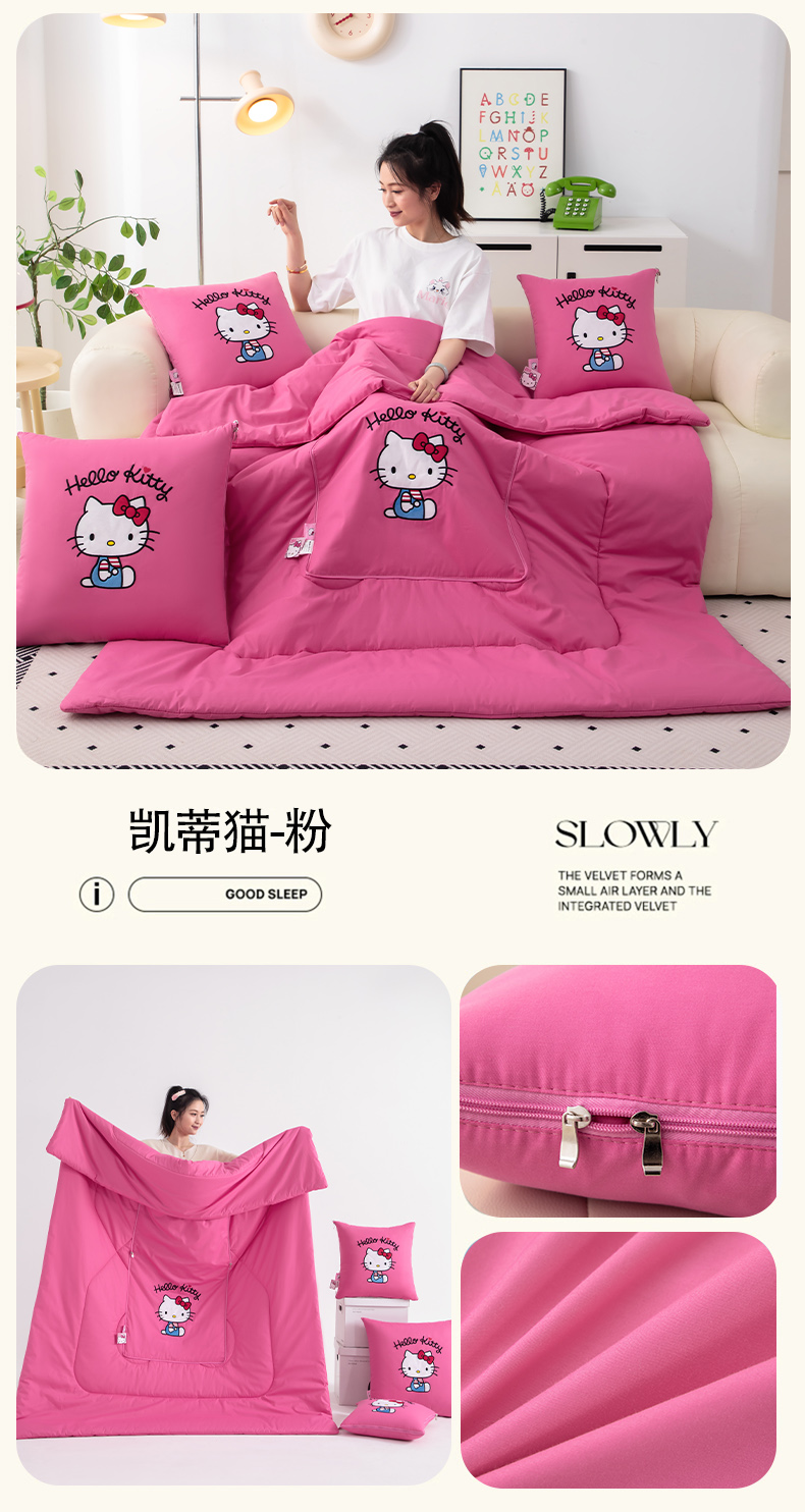 商品名称:照世家纺 2025新款全棉纯棉三丽鸥抱枕被【券后控价不低于:78/99/129/149/179】凯蒂猫-粉