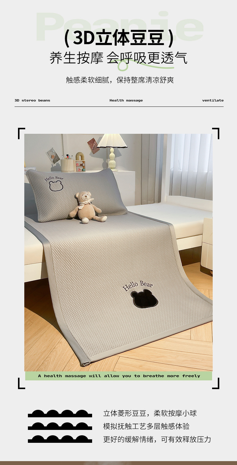 当前位置: 91家纺网 > 商品网购 > 床上用品 > 凉席 > 其他凉席 > 梵朴 2025新款凉感PE冰豆豆贴布绣凉席-学生床 八宝熊-灰