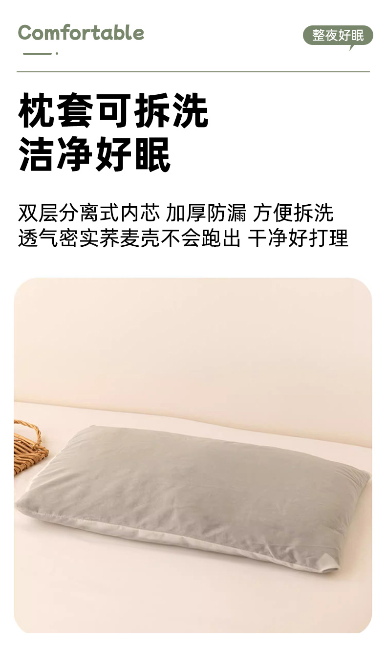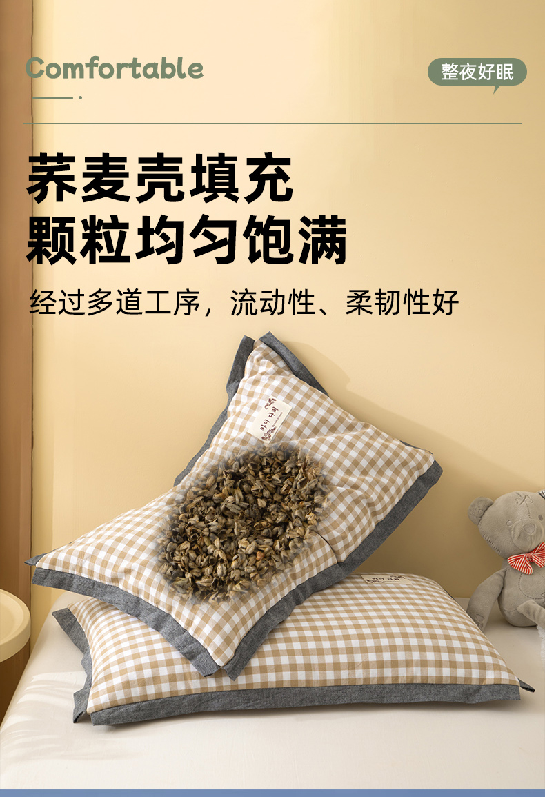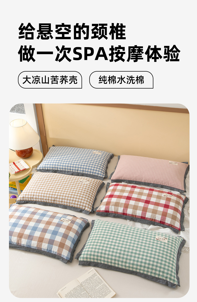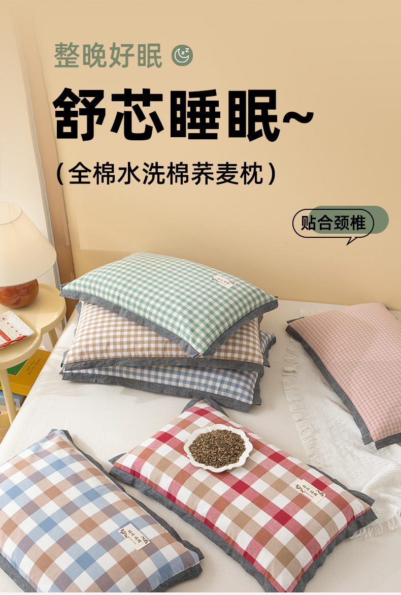 商品名称:(总)织布人 2025新款荞麦枕全棉水洗棉全荞麦枕小清新无印风成人家用护颈硬枕