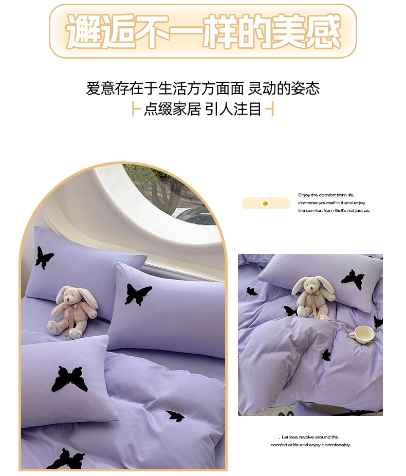 当前位置: 91家纺网 > 商品网购 > 床品套件 > 四件套 > 水洗棉四件套 > 迪拜家纺 2025新款加厚水洗棉四件套-蝴蝶 蝴蝶-紫