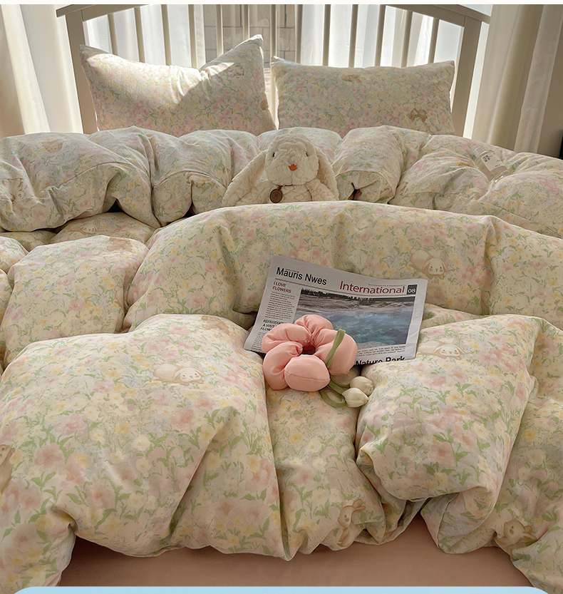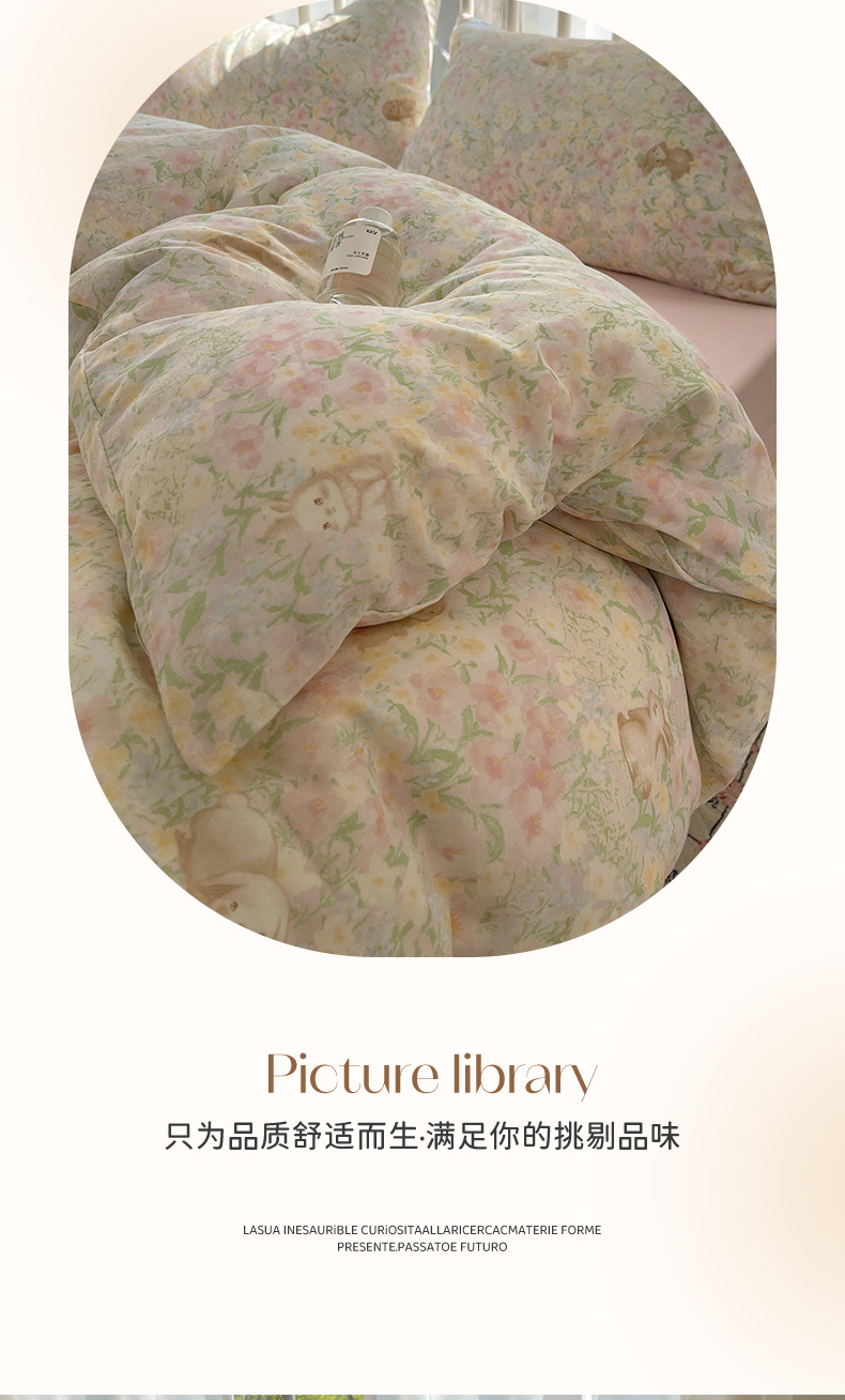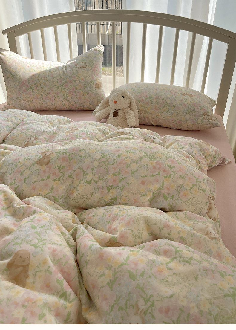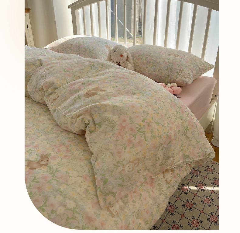 商品名称:瑞莱 2025夏季新款全棉纯棉有氧双层纱四件套 梦幻花园兔