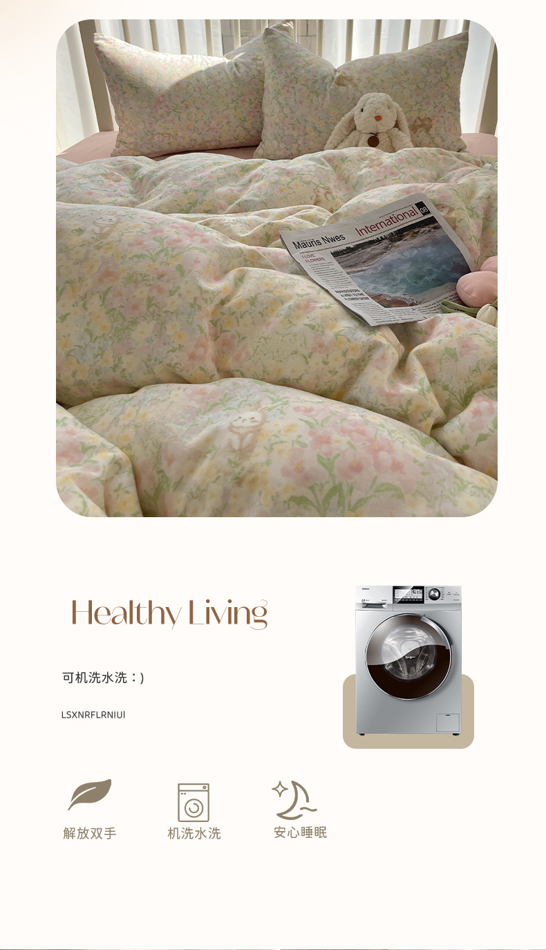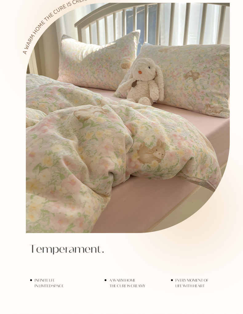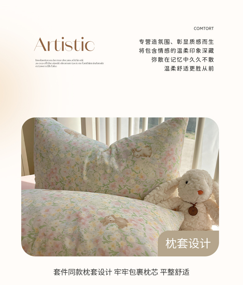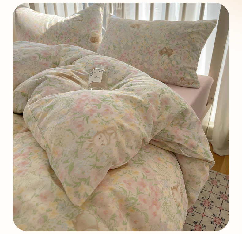 商品名称:瑞莱 2025夏季新款全棉纯棉有氧双层纱四件套 梦幻花园兔