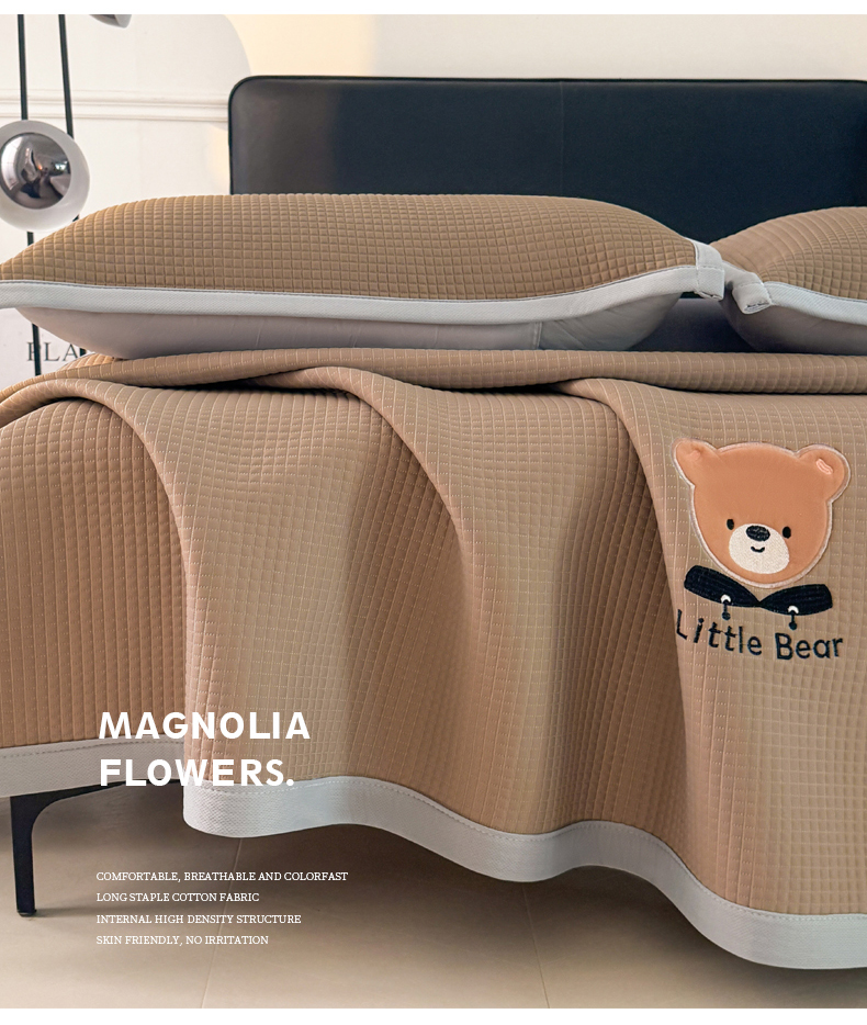 (总)爱思凯家纺 2025新款学生儿童房泡泡绒床单-松饼熊,松饼熊床单-卡其,松饼熊床单-粉,松饼熊床单-灰,松饼熊床单-蓝灰,松饼熊床单-绿,松饼熊床单-奶白