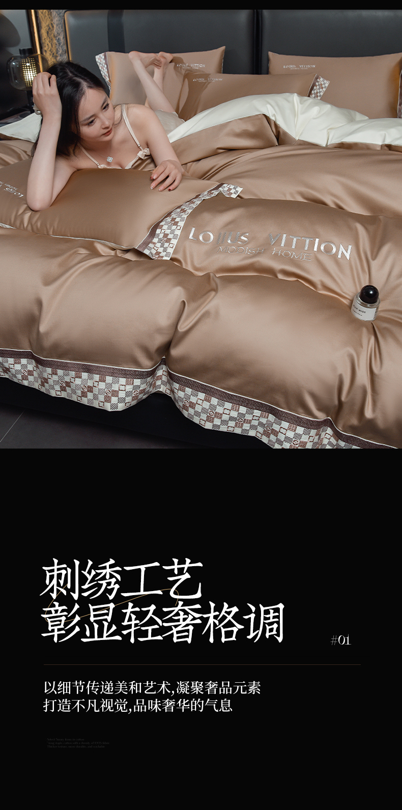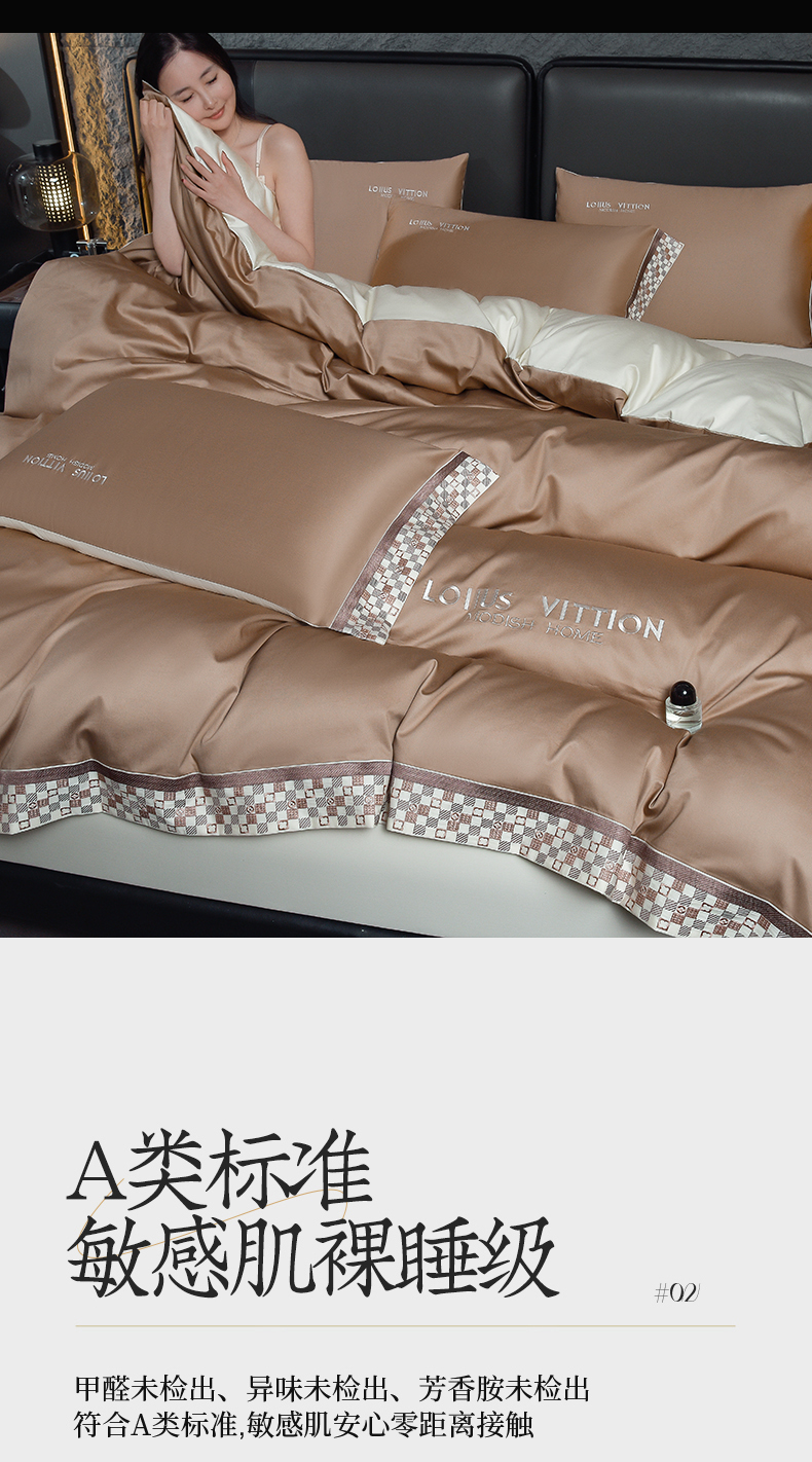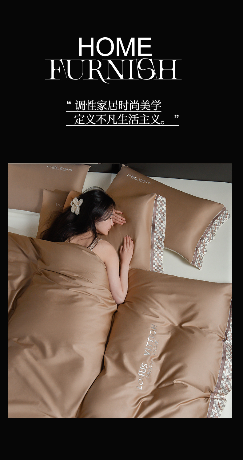 (总)瑞驰家纺 2025新款长绒棉绣花莱桉系列四件套,莱桉-贝壳白,莱桉-朵拉灰,莱桉-驼褐,莱桉-棕橙