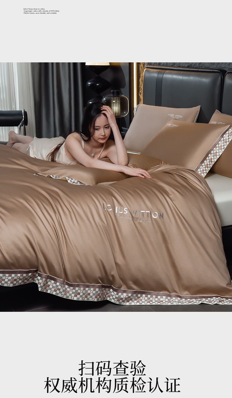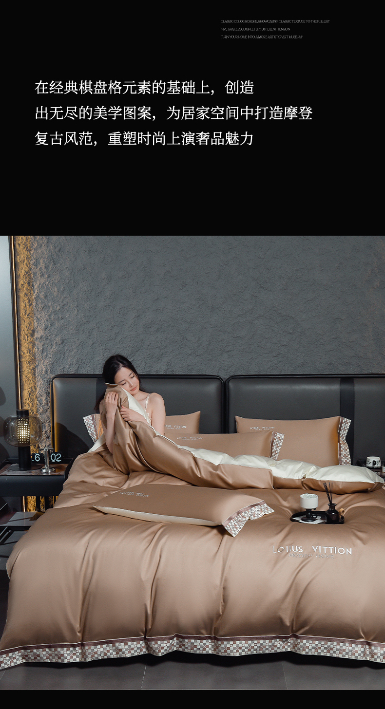 (总)瑞驰家纺 2025新款长绒棉纯棉绣花四件套-棋盘格系列,棋盘格-高级灰,棋盘格-米黄咖,棋盘格-摩卡橙,棋盘格-中咖