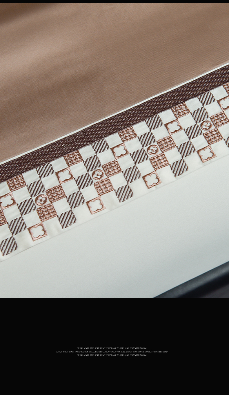 瑞驰家纺 2025新款长绒棉纯棉绣花四件套-棋盘格系列 棋盘格-中咖