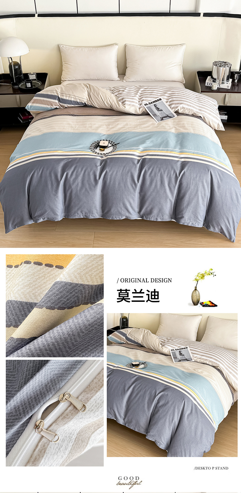 • 91家纺网 家纺一手货源 找家纺 依庭 2025新款全棉印花花卉款四件套单品系列-单被套 莫兰迪