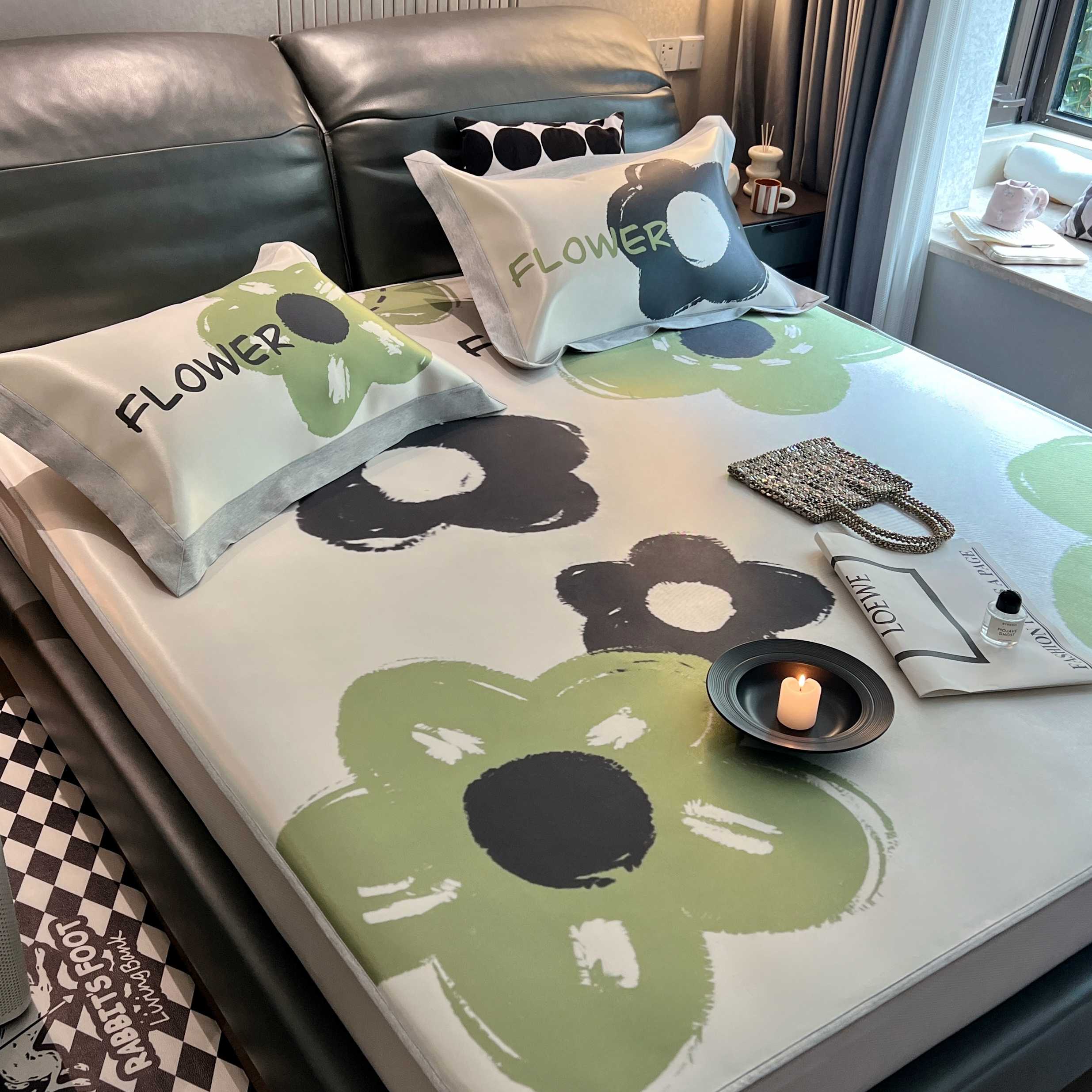商品名称:JUICY 橘滋家纺 2025新款夏日高端轻奢数码冰丝奢简高级凉席床笠 黑茶