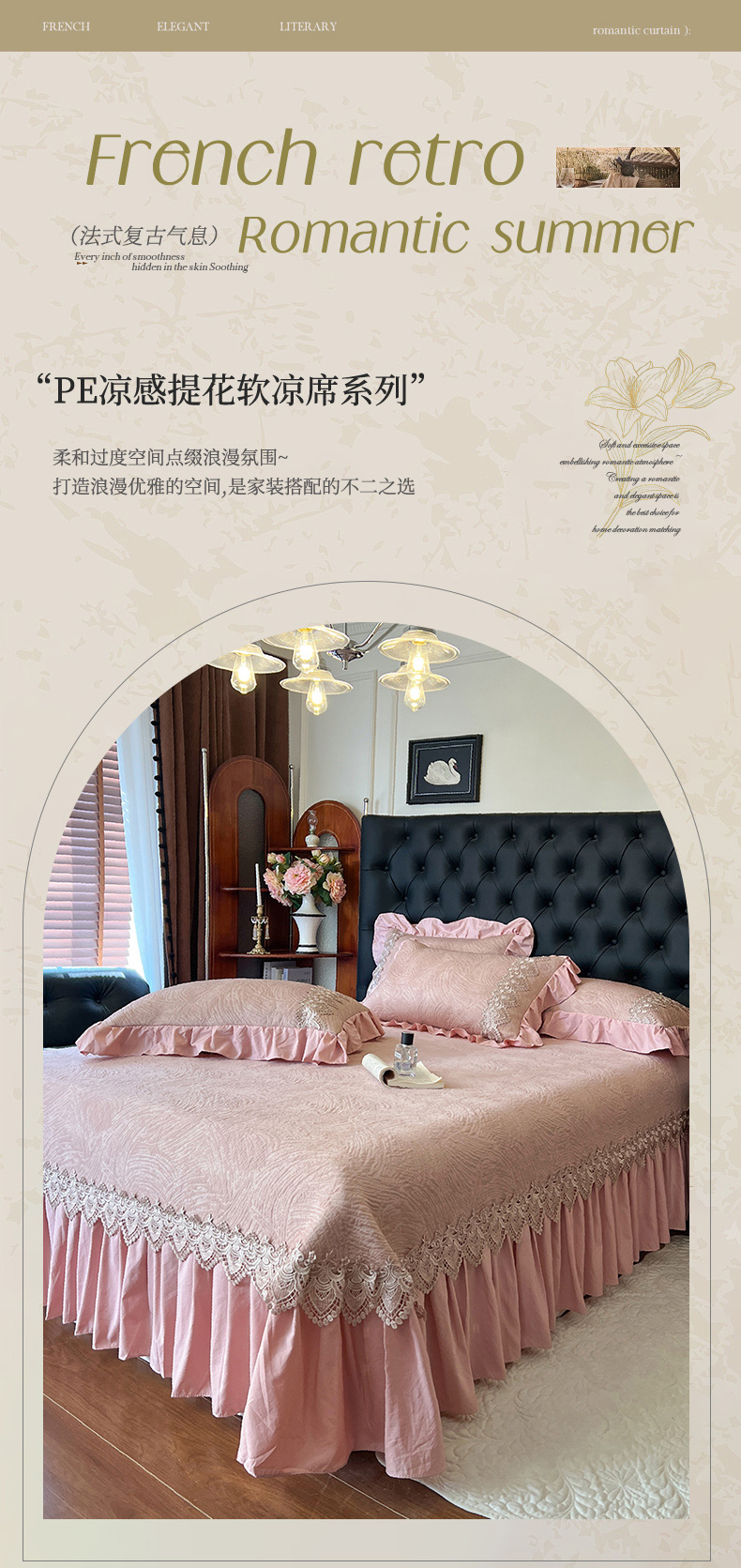 商品名称:乐朵家居 2025新款 唐顿庄园 (可配同色系空调被)PE凉席三件套(复合) 控价238 豆沙