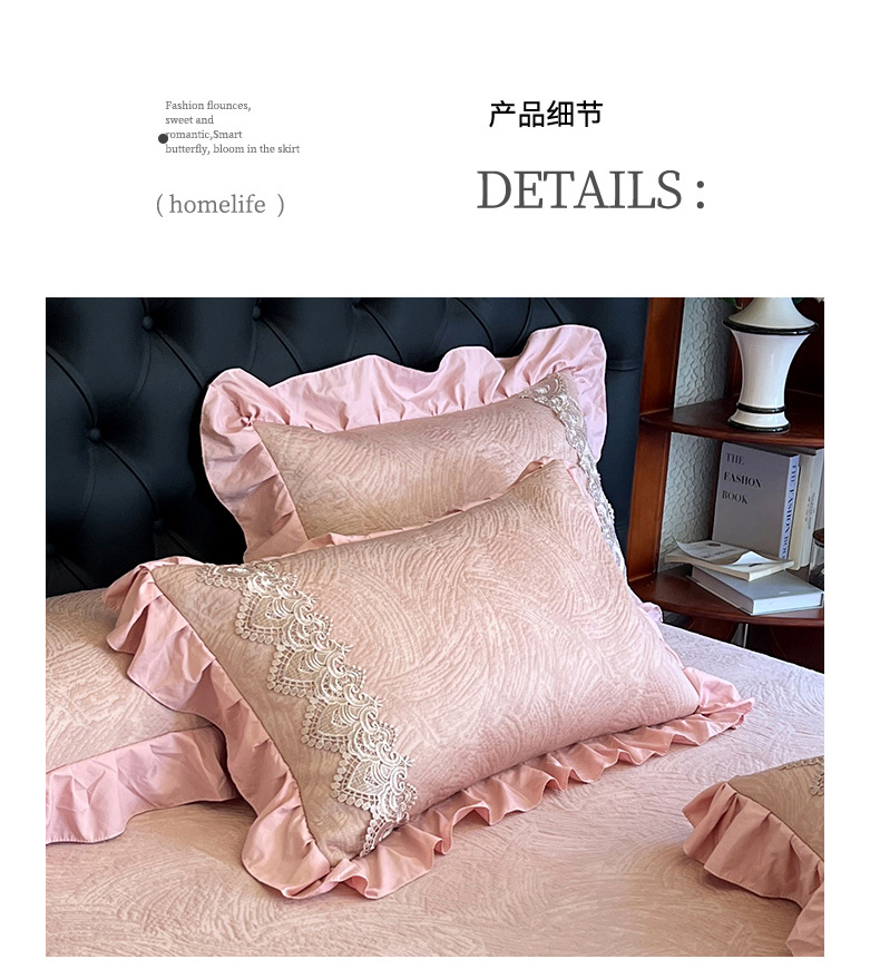 (总)乐朵家居 2025新款 南法庄园 牛奶绒 夹棉床盖四件套,粉玉,奶白