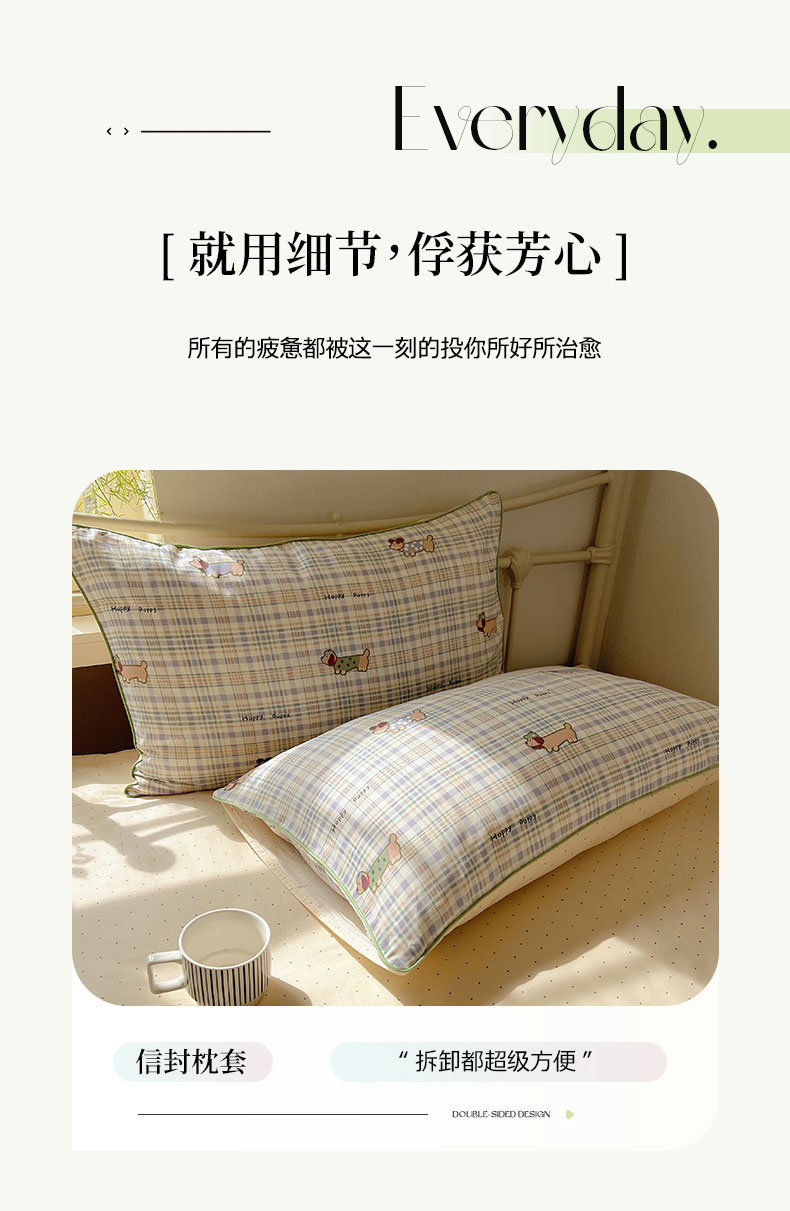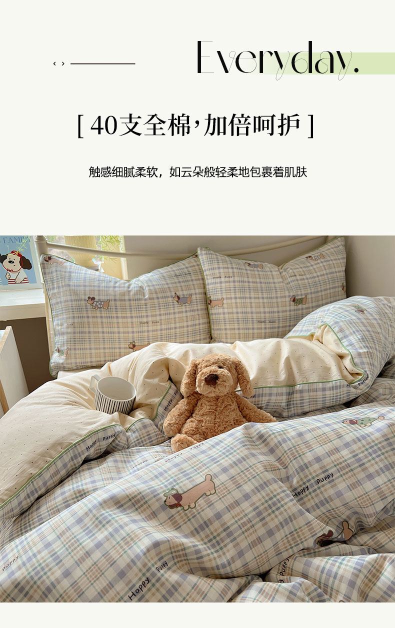 六巷胡同 2025新款40S全棉纯棉INS童趣可爱风卡通嵌绳款四件套 嵌绳格纹腊肠狗