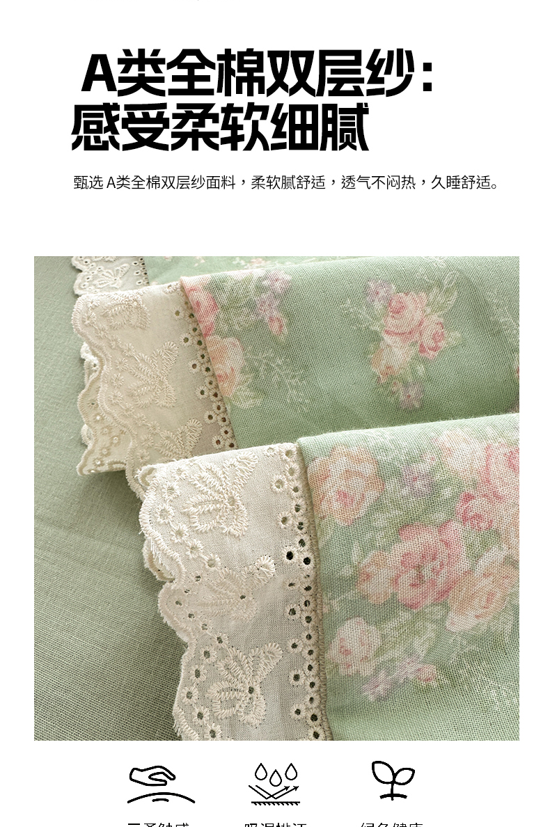 (总)曼之夏 2025新款A类全棉双层纱花边四件套,春风里,恩彩,观夏,丽莎,洛神玫瑰,茉莉,如梦令,苏打绿,晚香玉,郁金香
