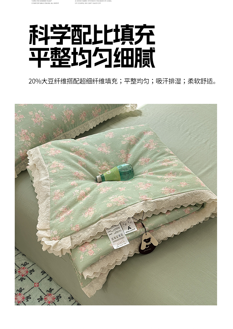 商品名称:曼之夏 2025新款A类全棉纯棉双层纱大豆纤维夏被夏凉被空调被 苏打绿