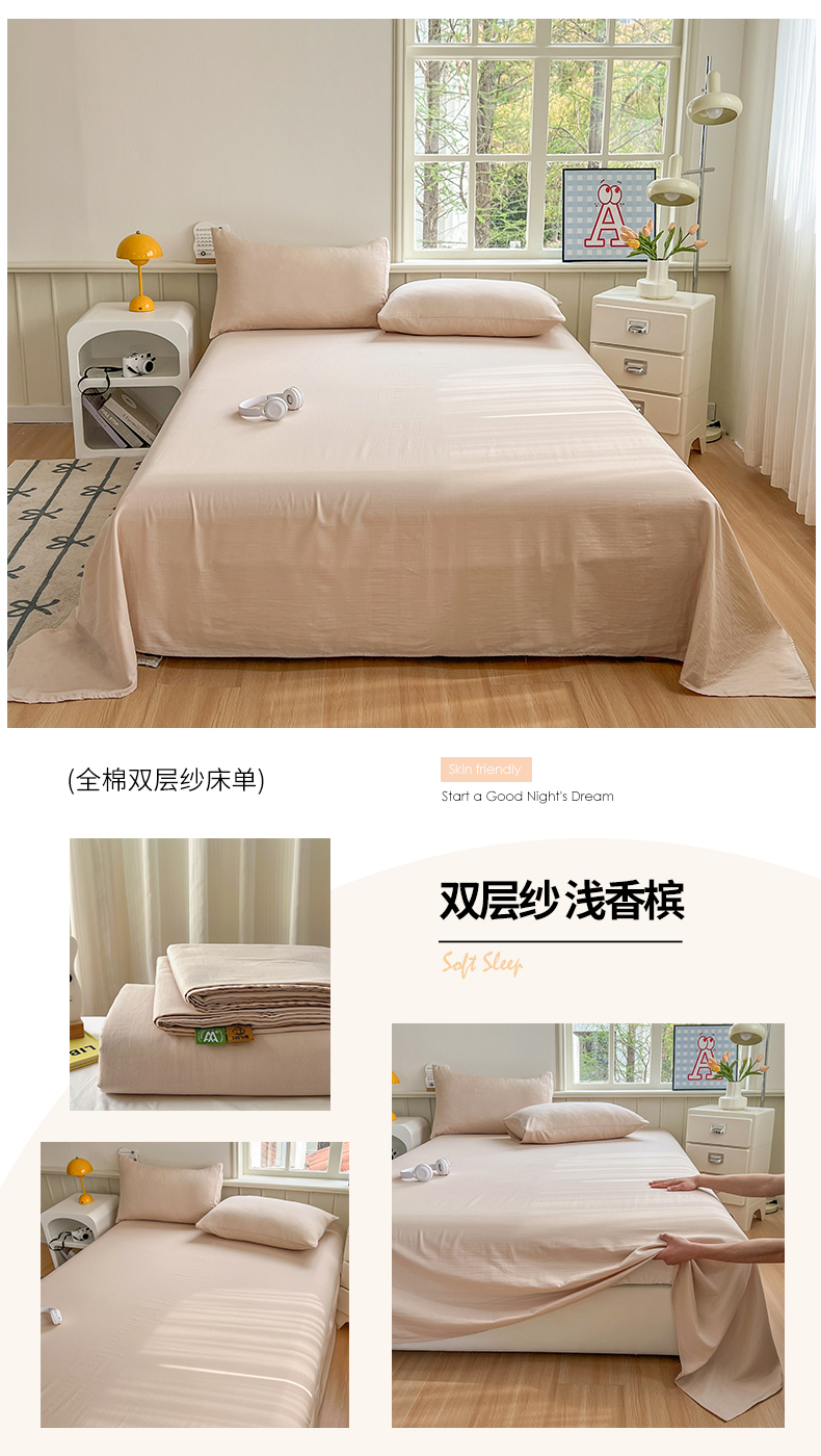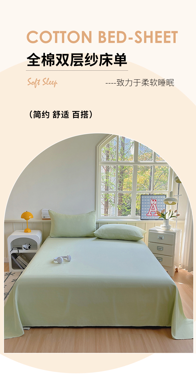 柠萌家居 2025年新款A类母婴级纯棉双层纱床单全棉床单 双层纱抹茶绿