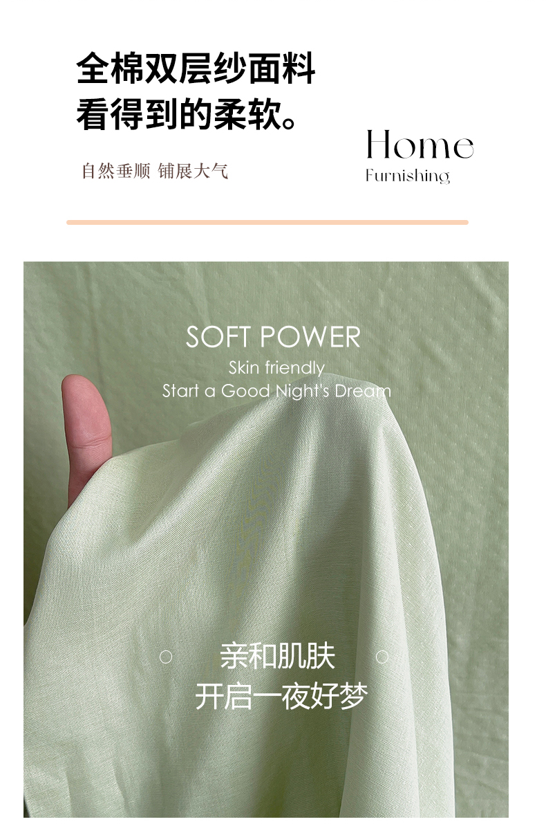 • 91家纺网 家纺一手货源 找家纺 柠萌家居 2025年新款A类母婴级纯棉双层纱床单全棉床单 双层纱抹茶绿 91家纺网 家纺一手货源 找家纺 柠萌家居 2025年新款A类母婴级纯棉双层纱床单全棉床单 双层纱抹茶绿
