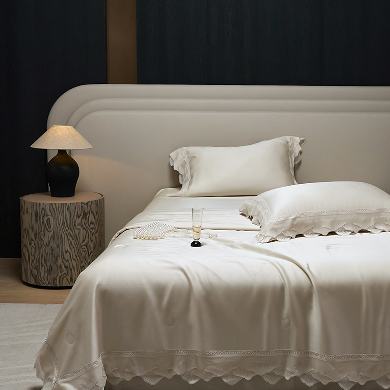 当前位置: 91家纺网 > 商品网购 > 床品套件 > 四件套 > 莱赛尔四件套 > 洽想家 2025新品80支兰精天丝大豆纤维夏被四件套-山峦迭 山峦迭-金