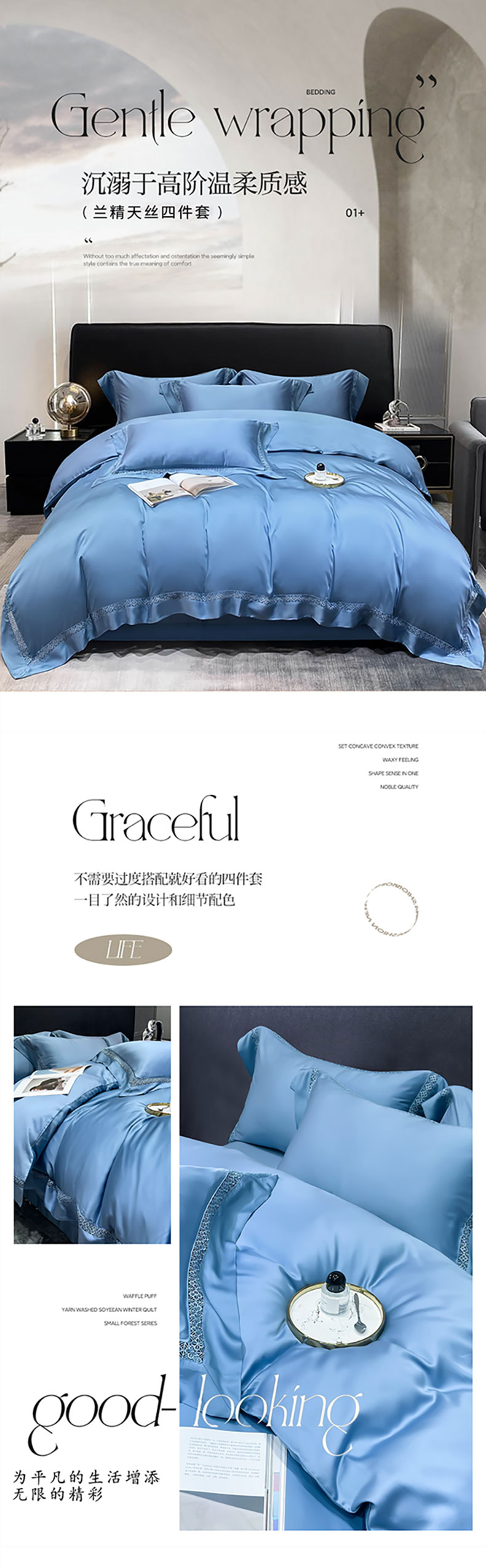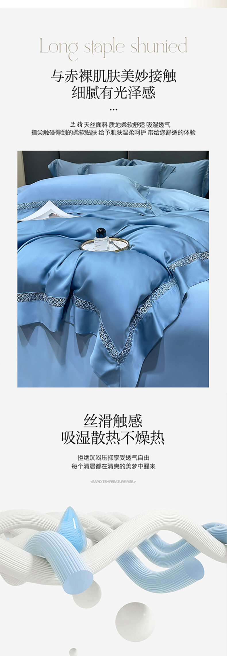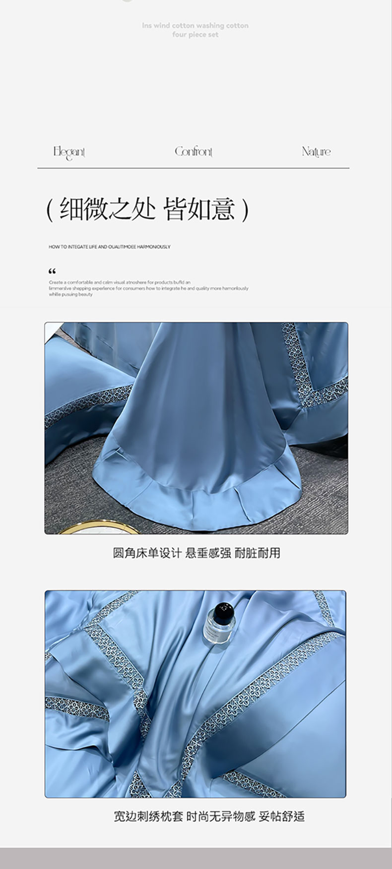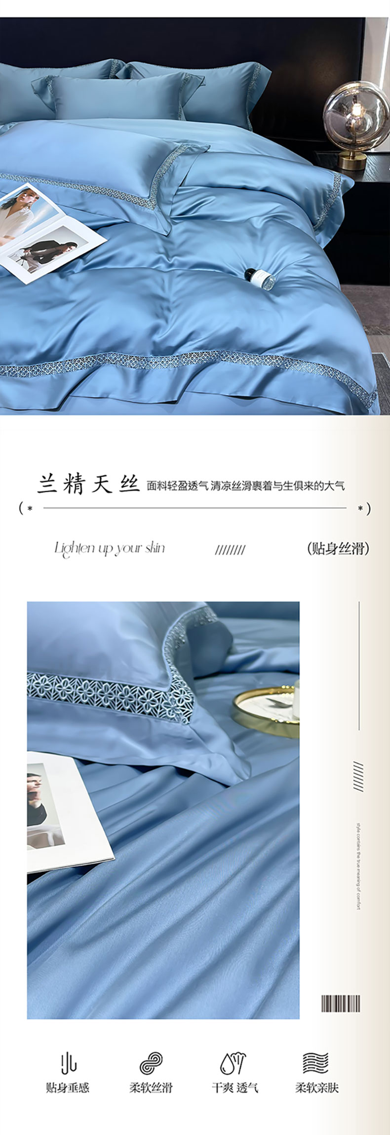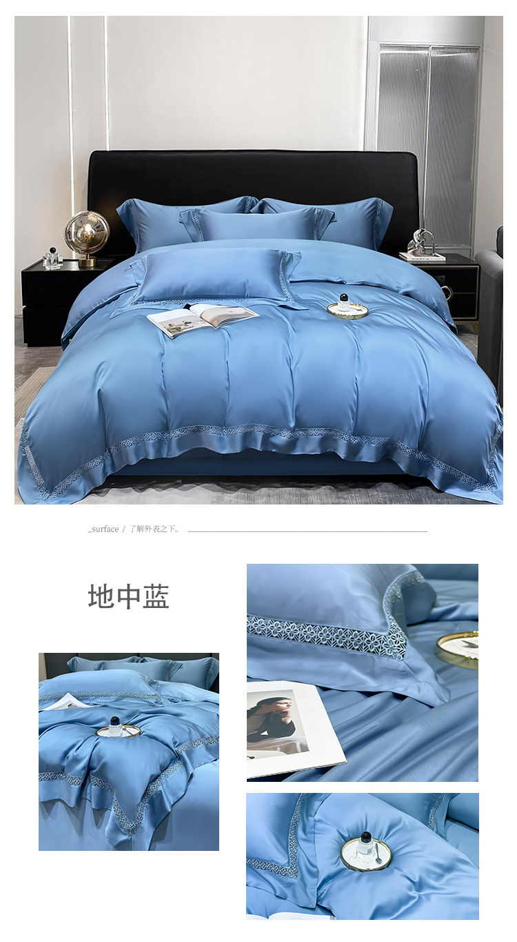商品名称:洽想家 2025新款80支天丝镂空瑾系列四件套 瑾-地中蓝