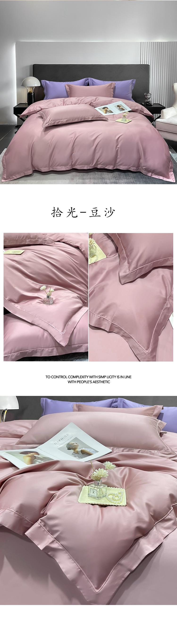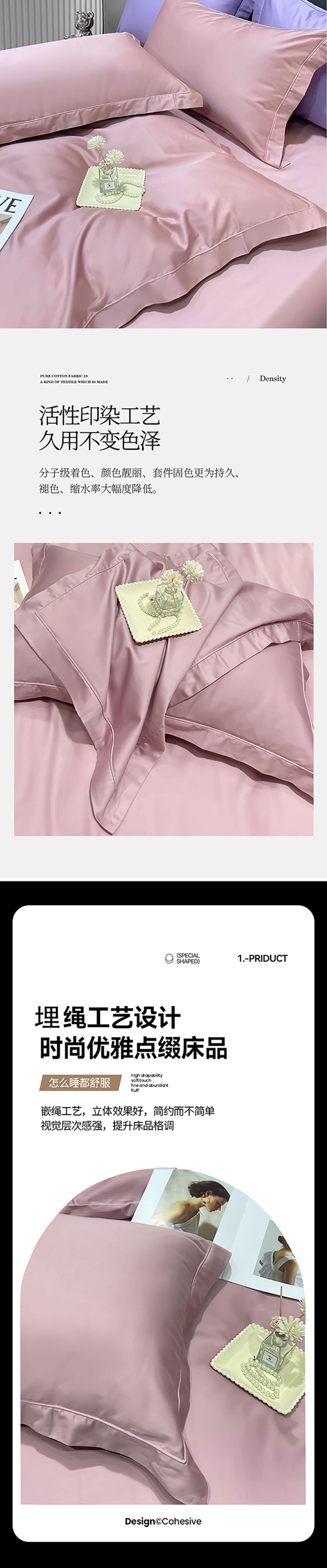 商品名称:洽想家 2025新款100支新疆长绒棉纯色埋绳款四件套 豆沙