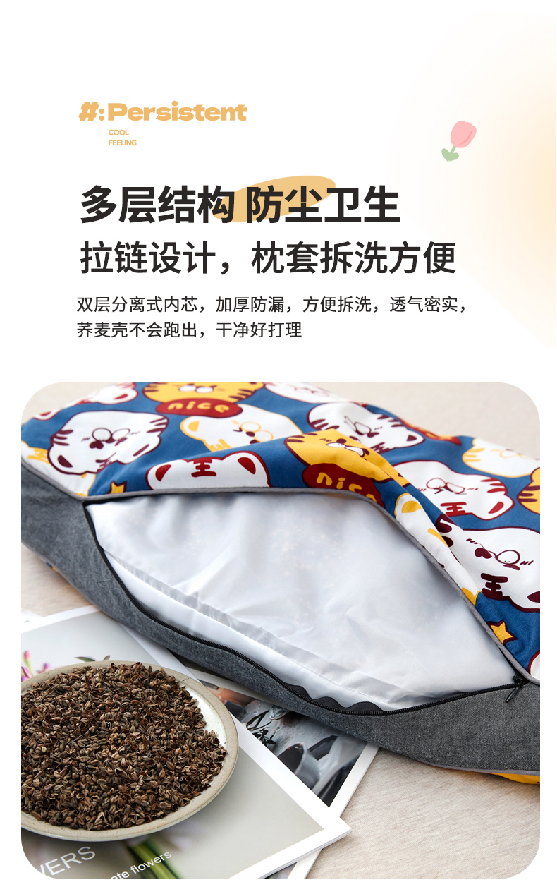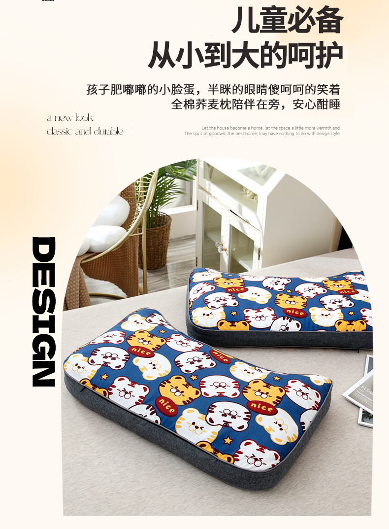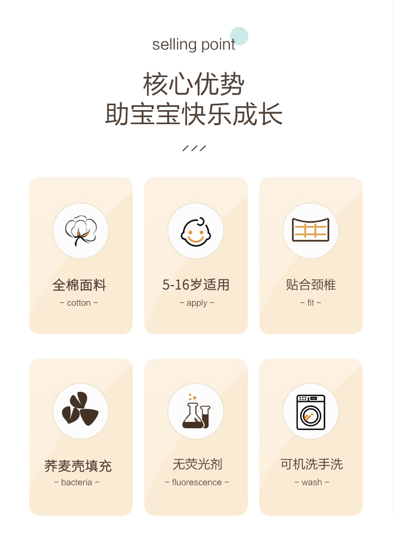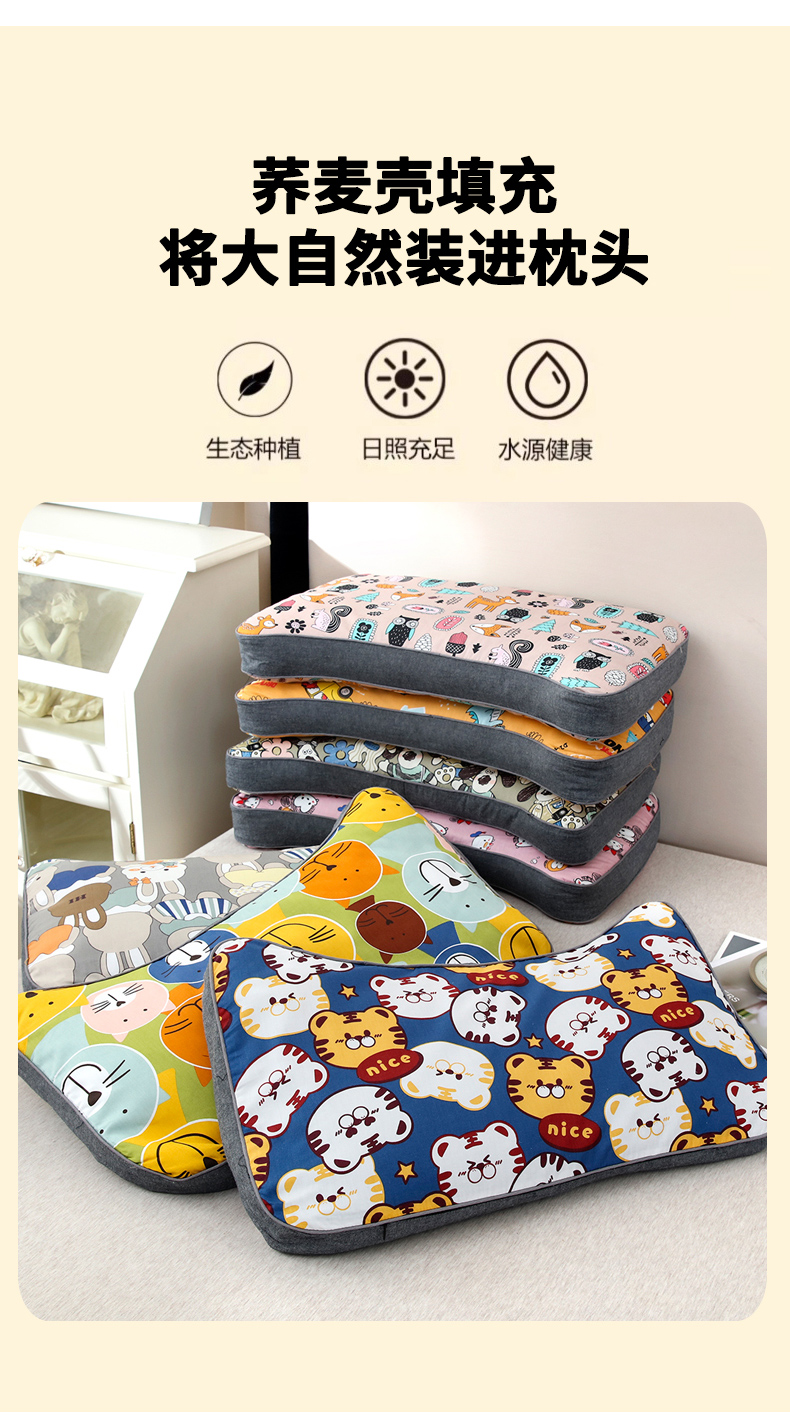 商品名称:(总)明星枕业 2025新款纯棉儿童卡通荞麦枕学生护椎枕可拆洗家用