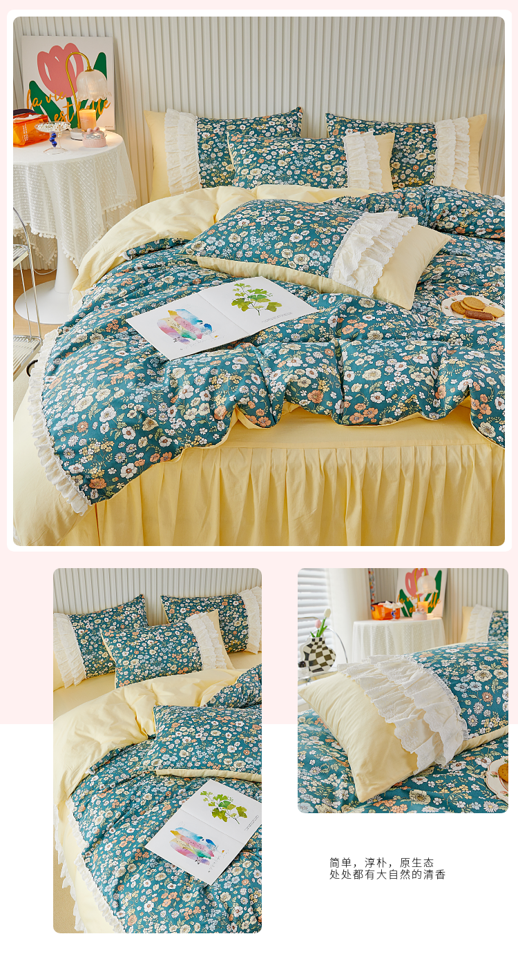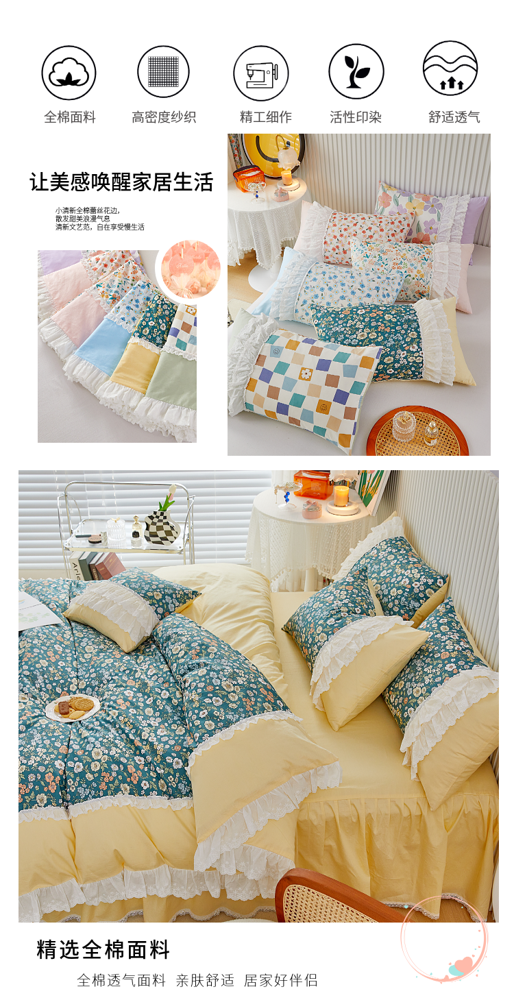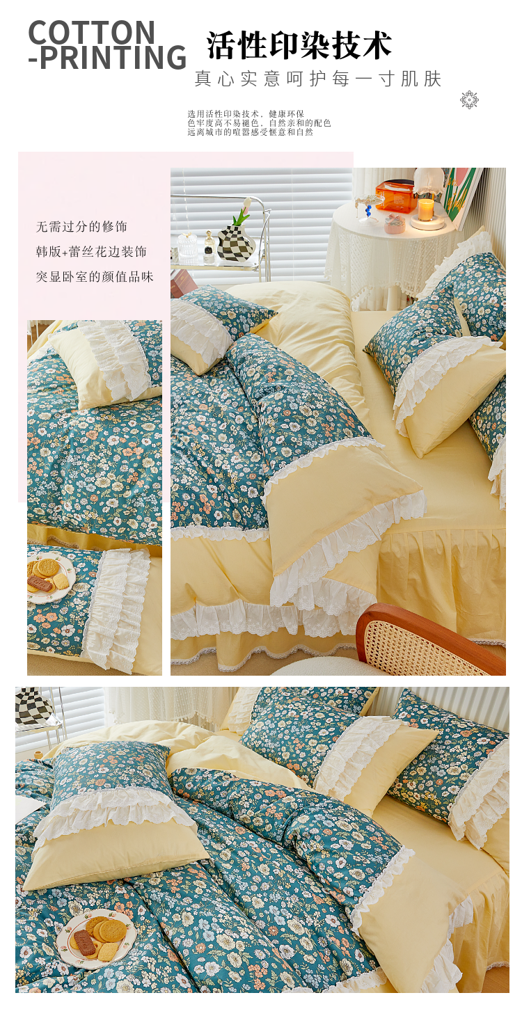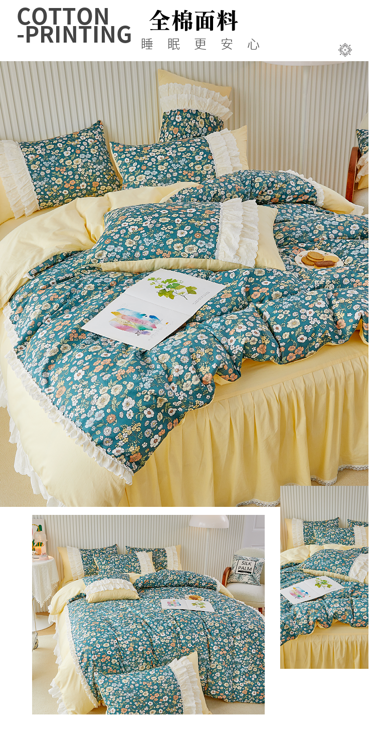 (总)亲亲公主 2025全棉蕾丝花边床裙公主风四件套,甜心花园-玉色,甜心花园-绿色,甜心花园-黄色,甜心花园-浅紫色,甜心花园-蓝色,甜心花园-粉色