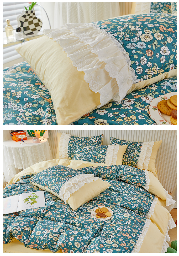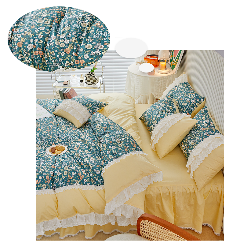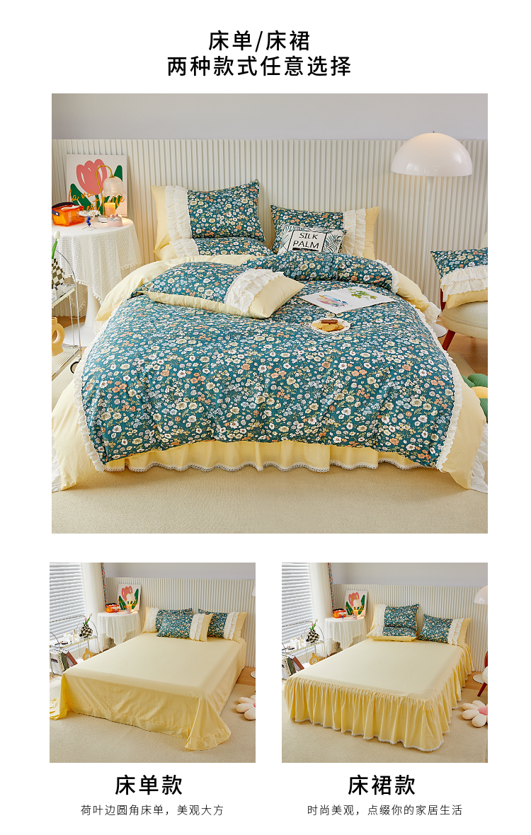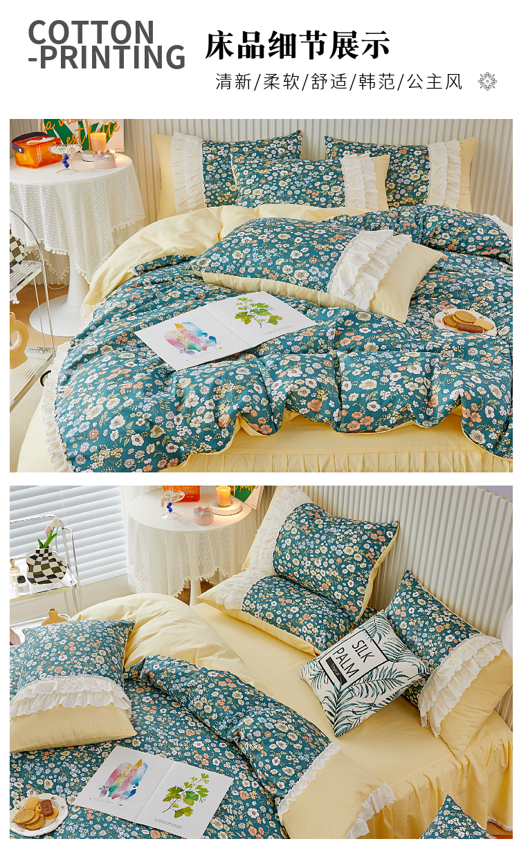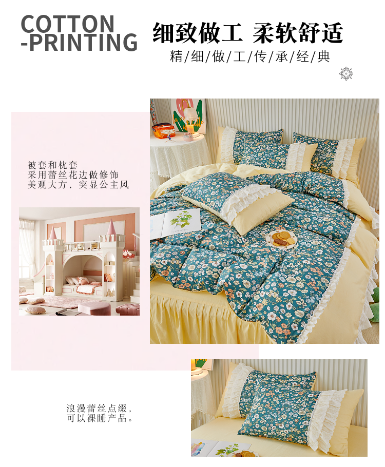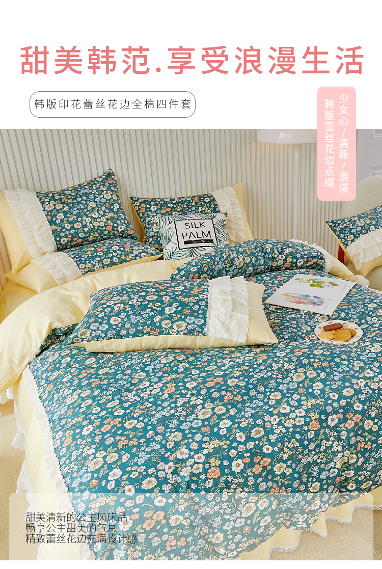 (总)亲亲公主 2025全棉蕾丝花边床裙公主风四件套,甜心花园-玉色,甜心花园-绿色,甜心花园-黄色,甜心花园-浅紫色,甜心花园-蓝色,甜心花园-粉色
