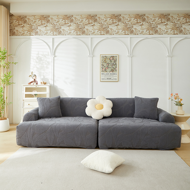 商品名称:丝绮鹿 2025新款富贵叶系列-沙发套松紧款(组合沙发图) 浅灰
