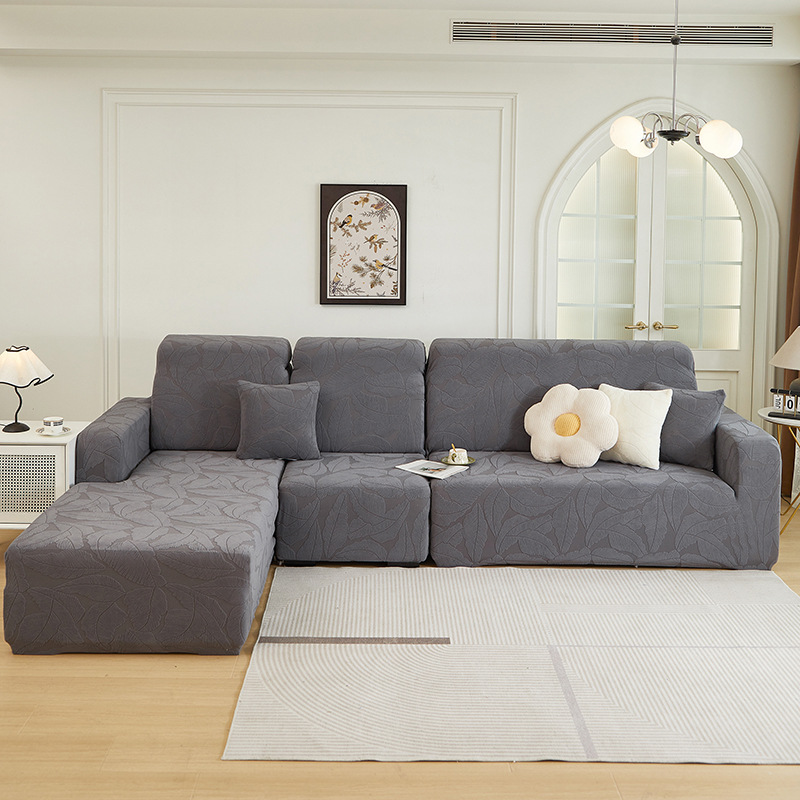 丝绮鹿 2025新款富贵叶系列-沙发套松紧款(贵妃图) 浅灰