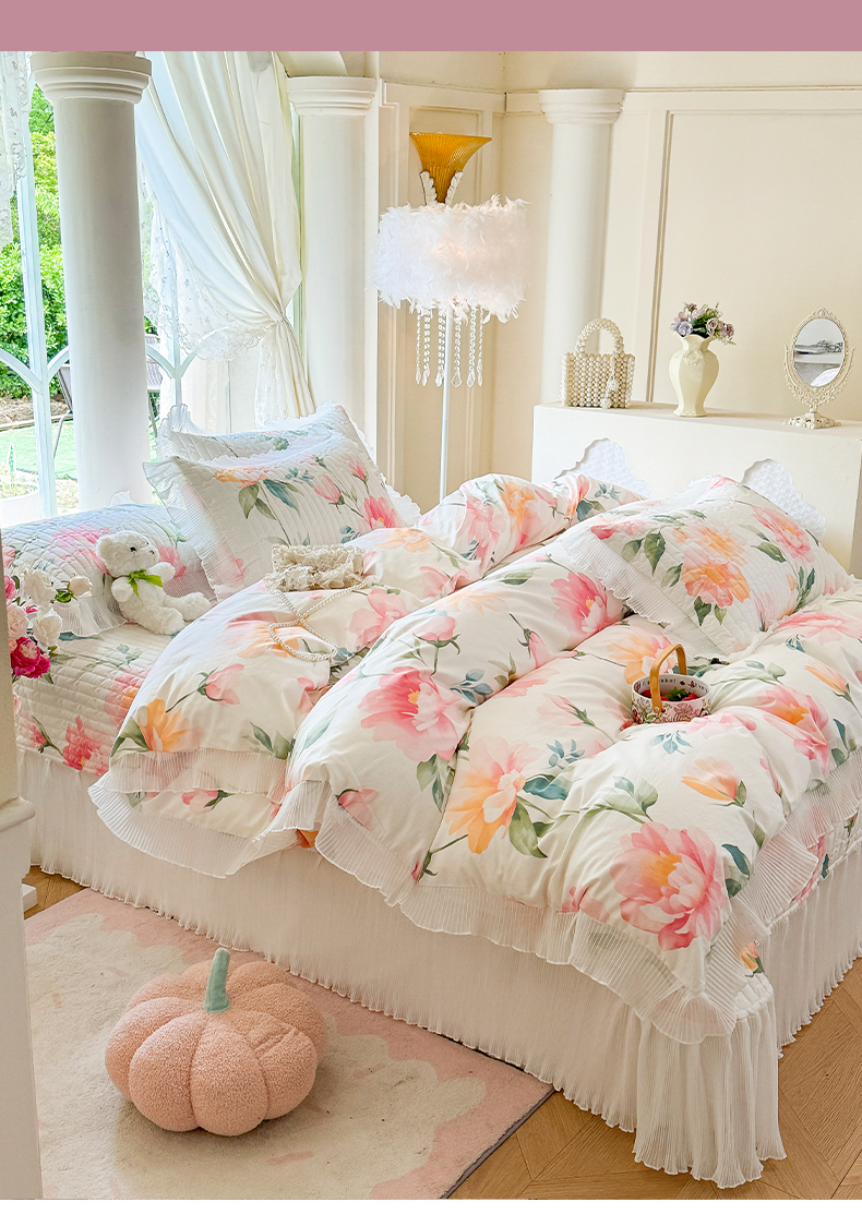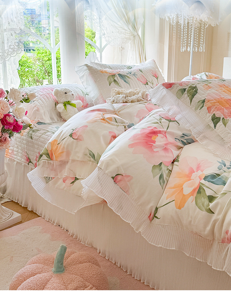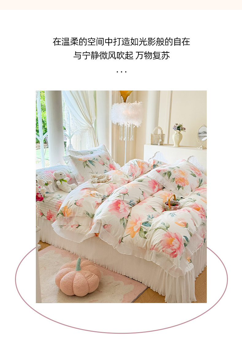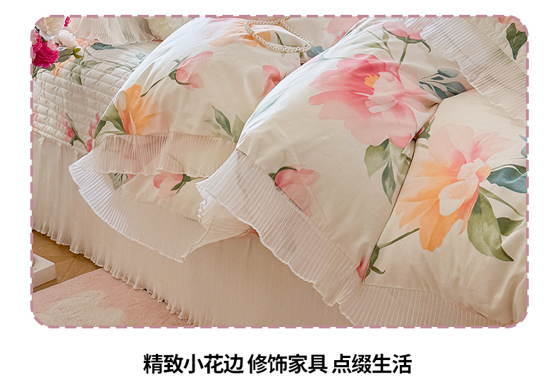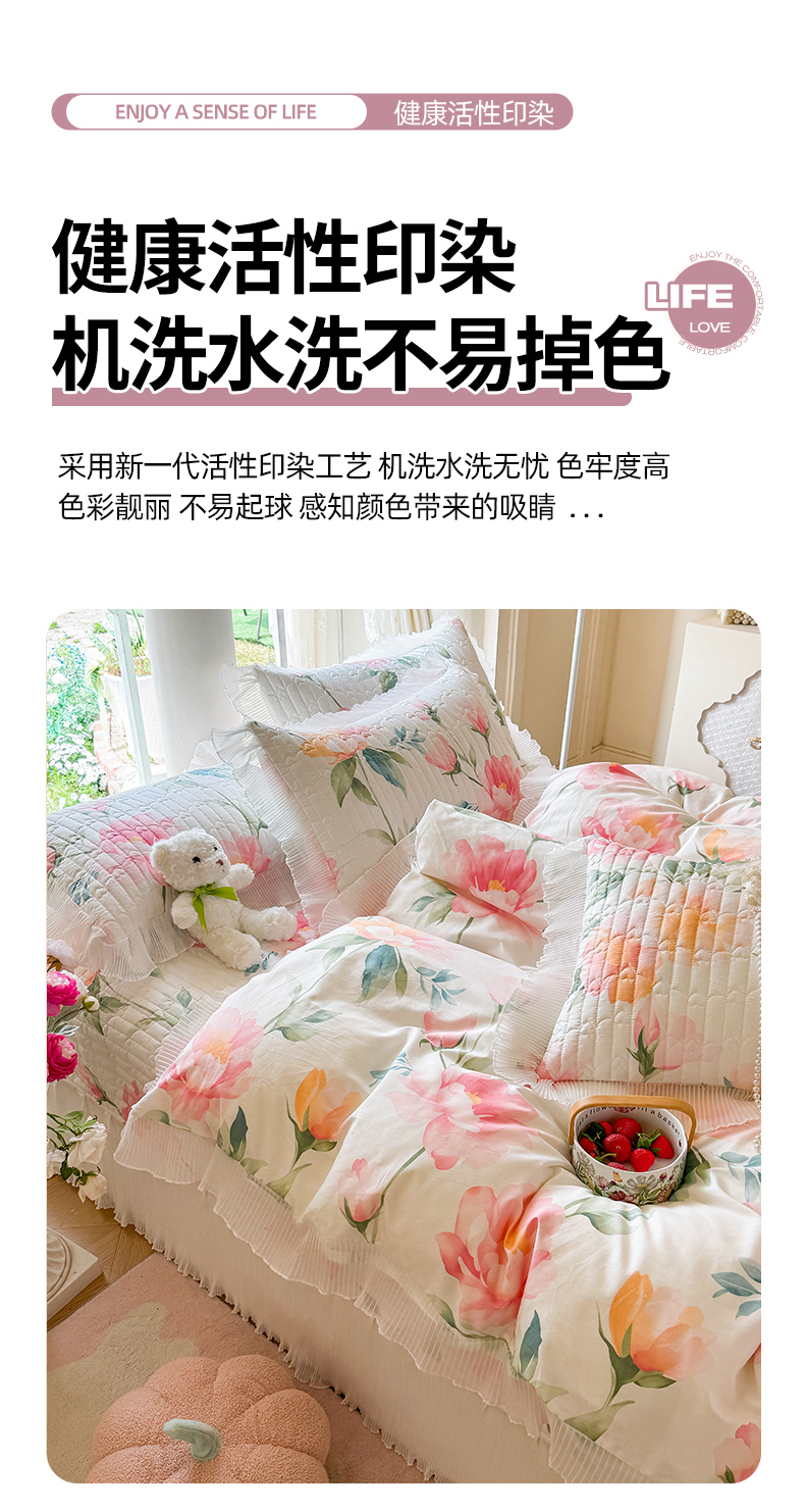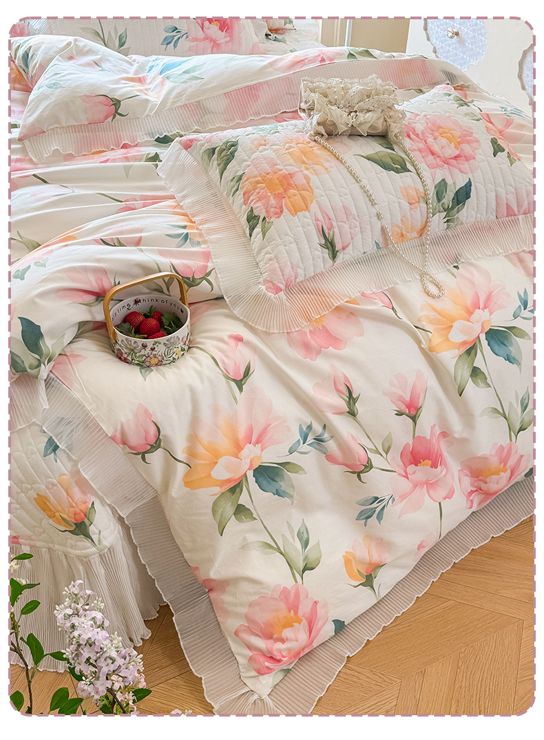 商品名称:虹星家纺 2025新款斜纹全棉纯棉印花床盖四件套-清甜 清甜-夏恋