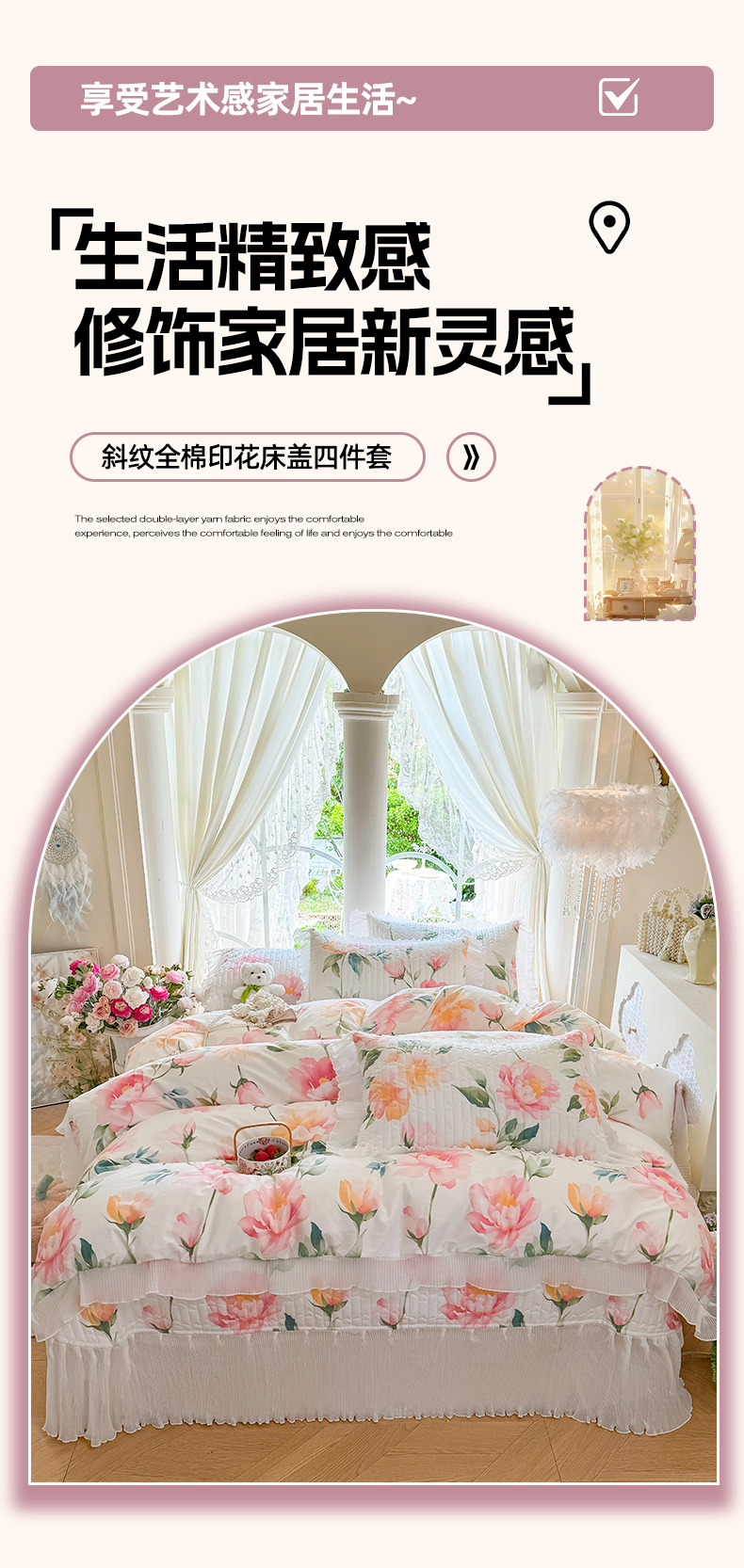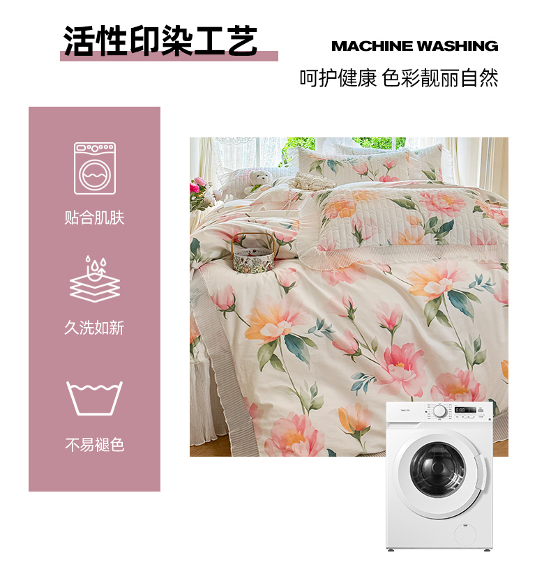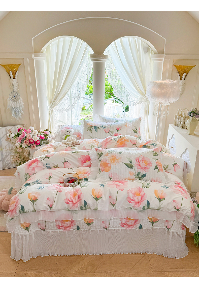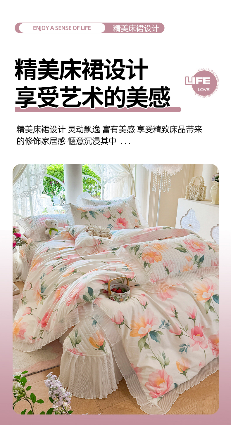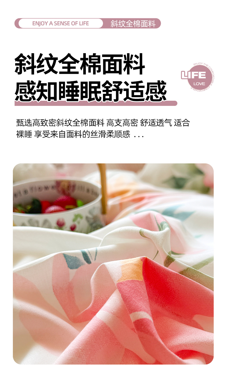 商品名称:虹星家纺 2025新款斜纹全棉纯棉印花床盖四件套-清甜 清甜-夏恋