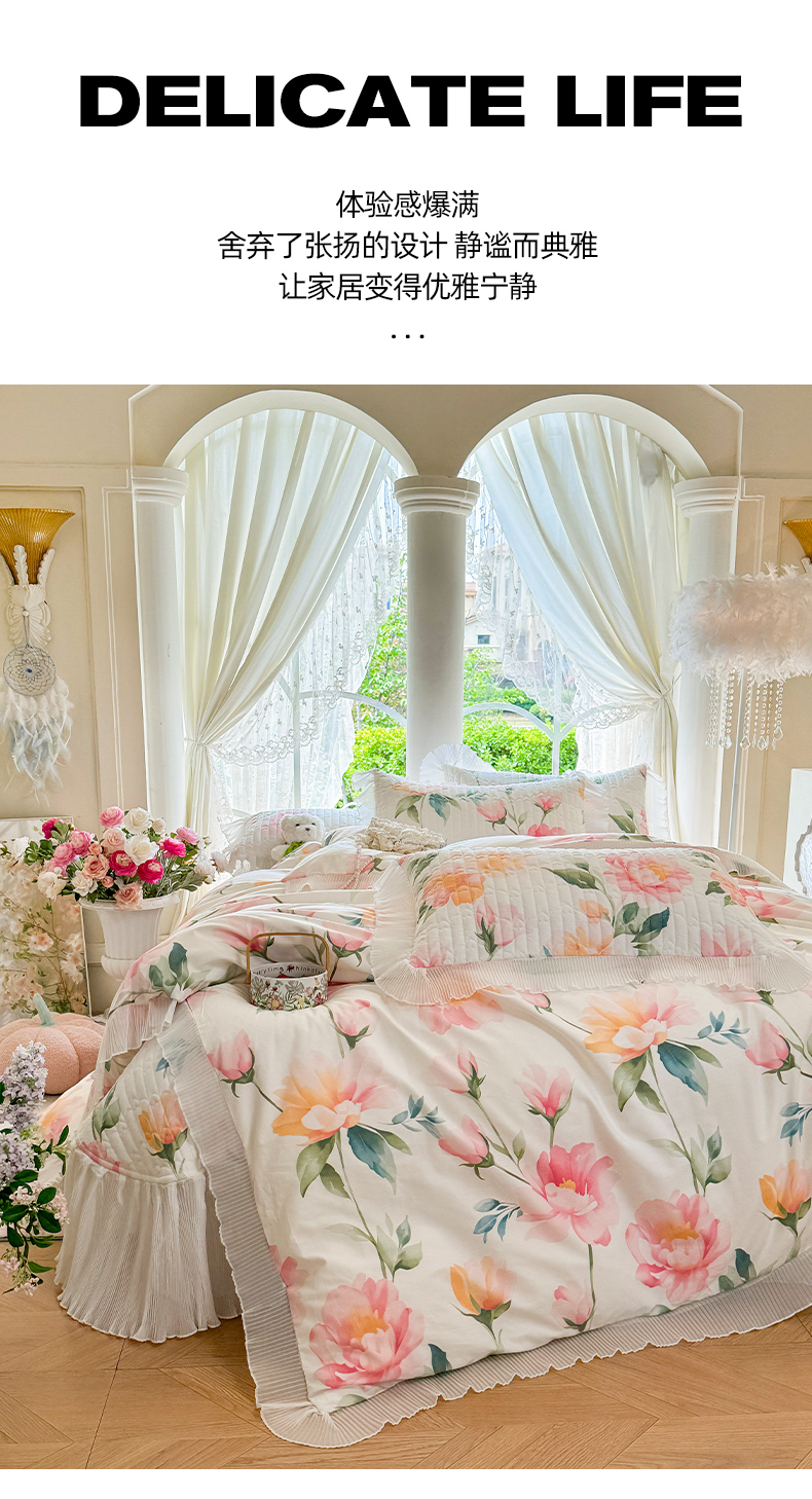 (总)虹星家纺 2025年新款全棉床盖四件套-花影倾梦,花影倾梦-浅米色,花影倾梦-薄荷绿,花影倾梦-天空蓝,花影倾梦-樱花粉,花影倾梦-优雅紫,花影倾梦-云朵白