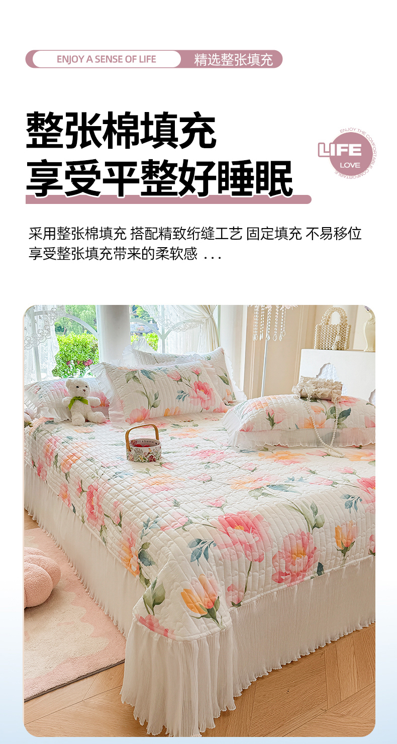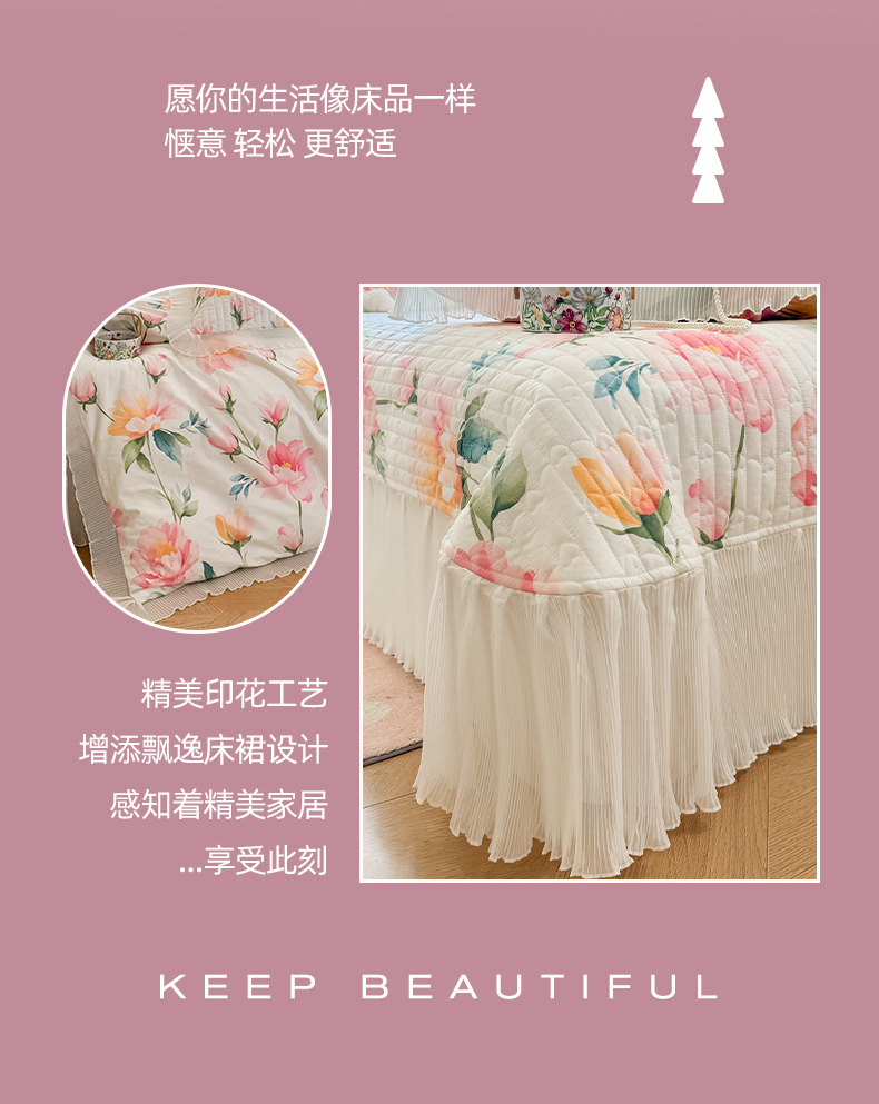 (总)虹星家纺 2025年新款全棉床盖三件套-花影倾梦,花影倾梦-浅米色,花影倾梦-薄荷绿,花影倾梦-天空蓝,花影倾梦-樱花粉,花影倾梦-优雅紫,花影倾梦-云朵白