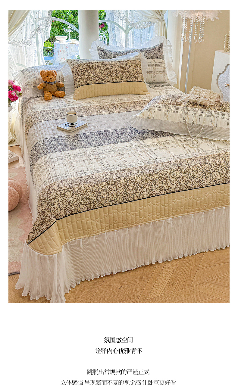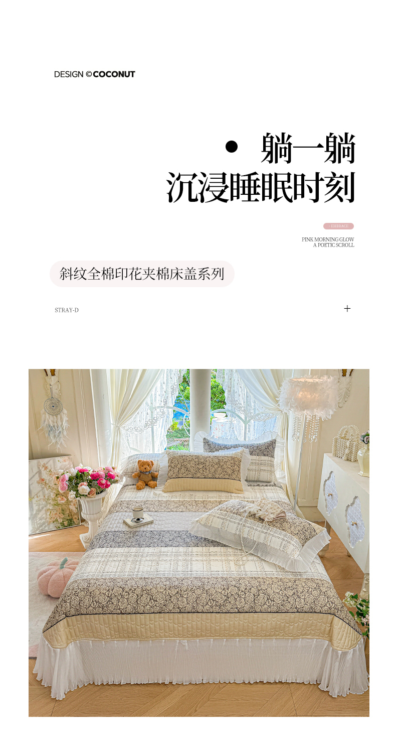 商品名称:虹星家纺 2025新款斜纹全棉纯棉印花床盖-清甜 清甜-古色古香