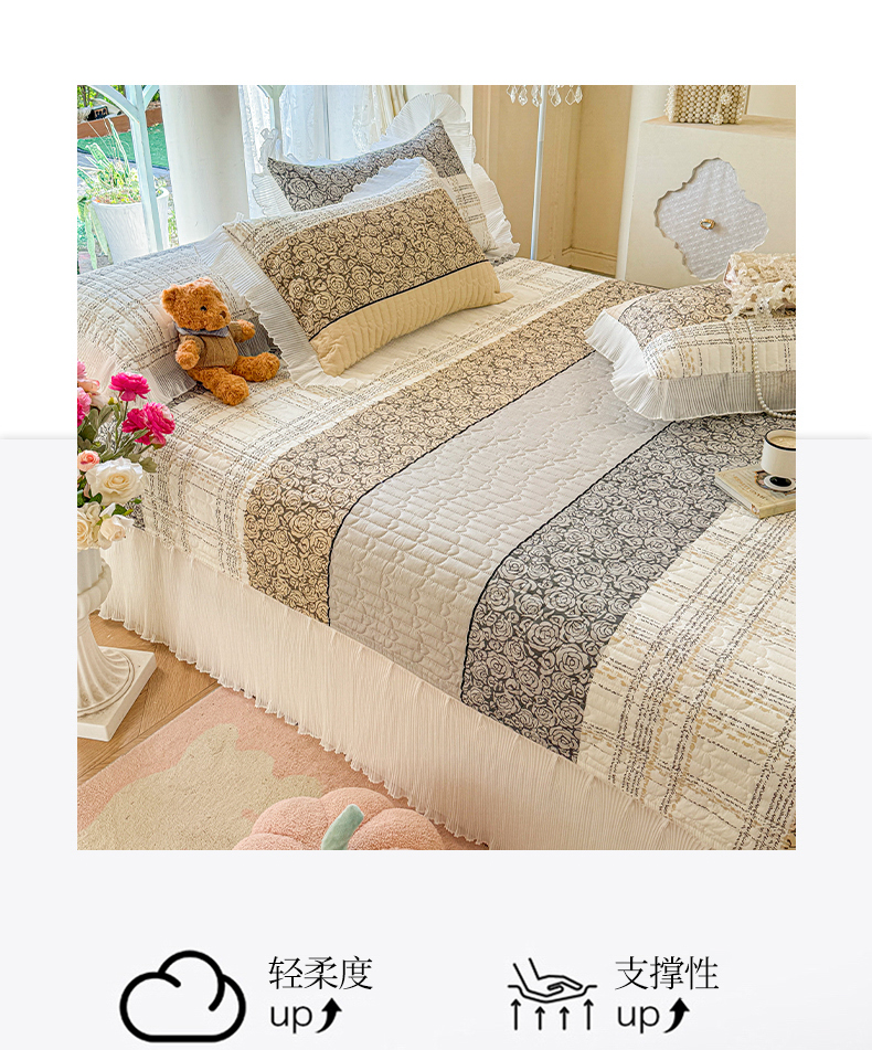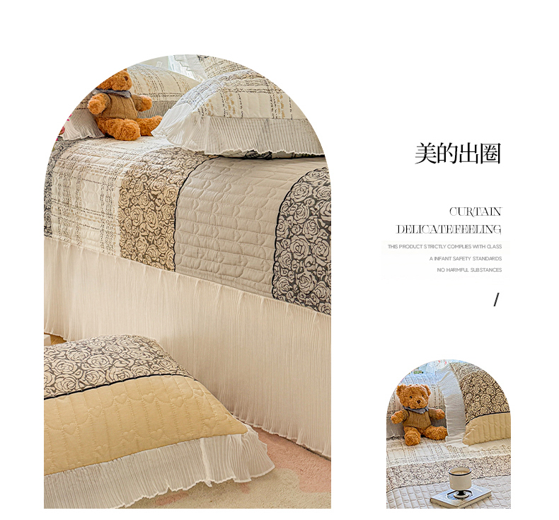 (总)虹星家纺 2025新款雕花牛奶绒床裙三件套-花溪系列,花溪-米黄,花溪-奶油黄