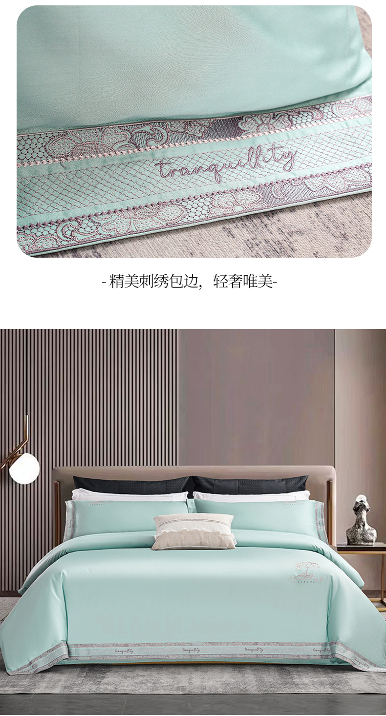博之洋婚庆 2025新款纯棉全棉长绒棉刺绣绣花高端礼盒四件套-仲夏 仲夏-夏之绿