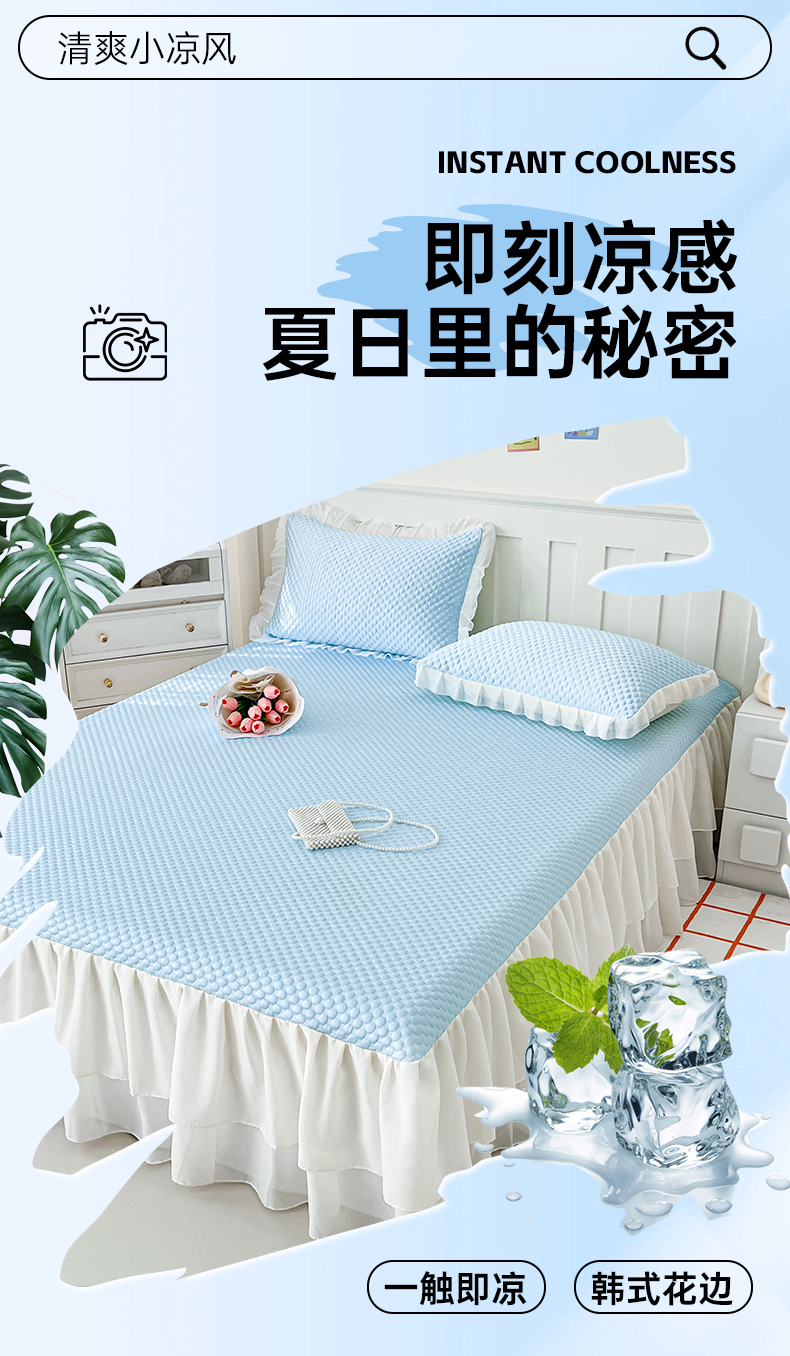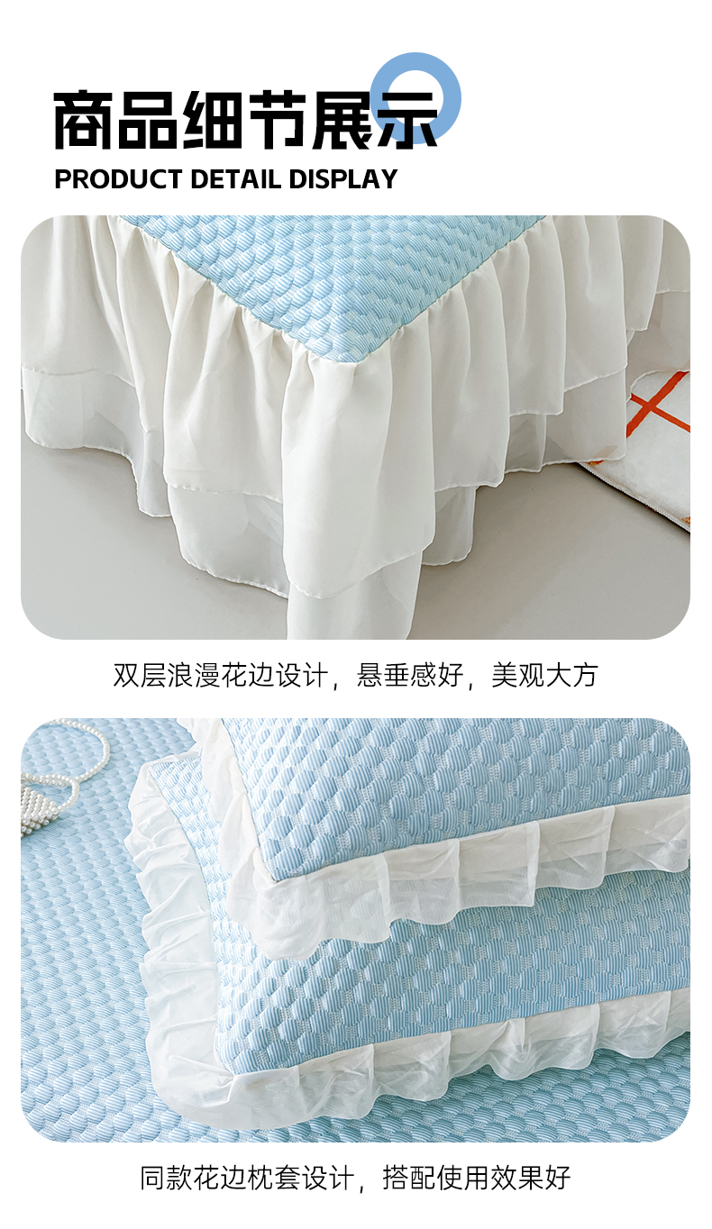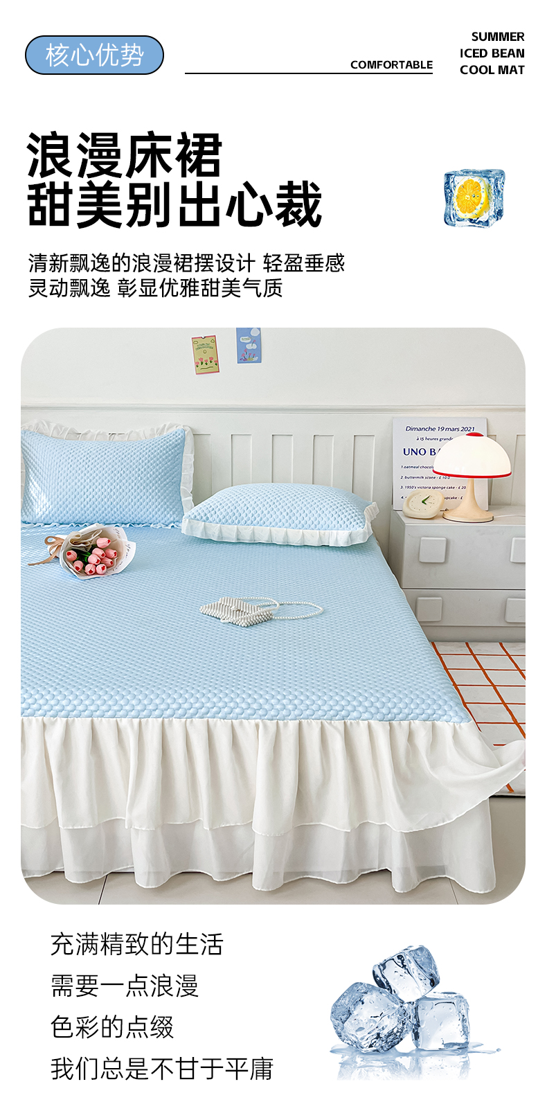 商品名称:857家居 2025新款冰雪凉豆豆床裙凉席三件套 冰雪豆豆席蓝