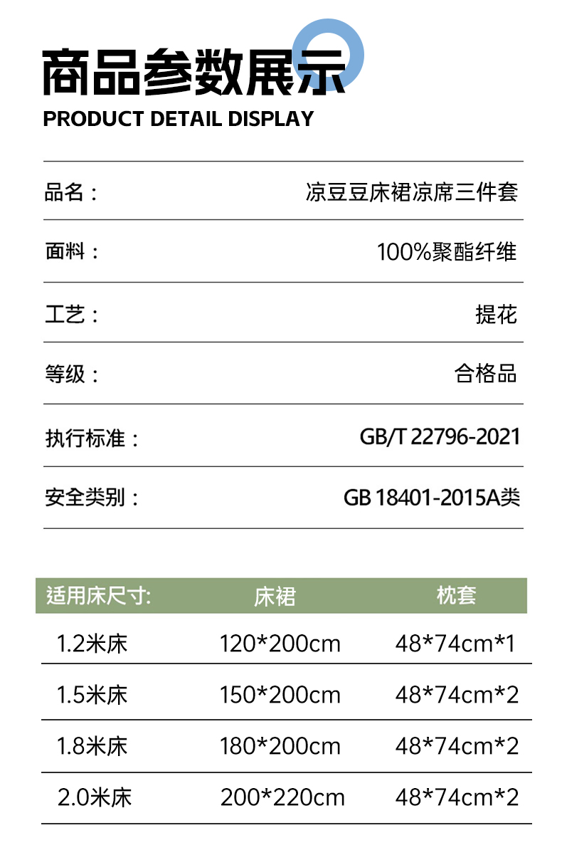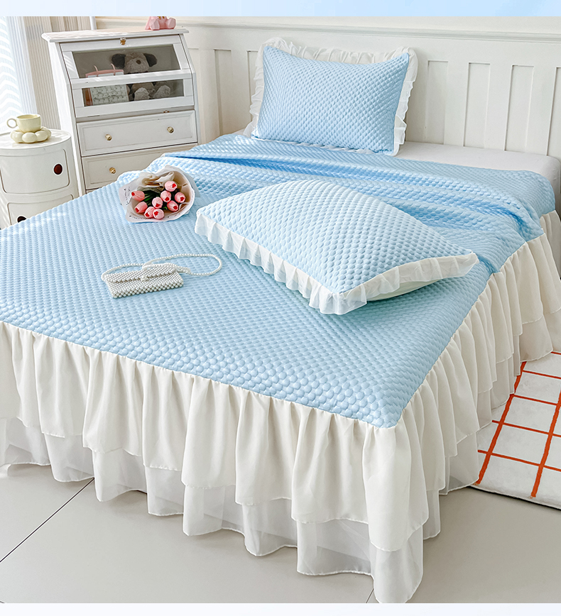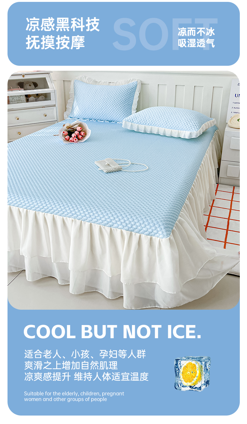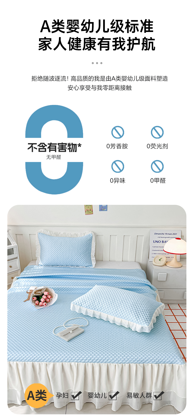 商品名称:857家居 2025新款冰雪凉豆豆床裙凉席三件套 冰雪豆豆席蓝