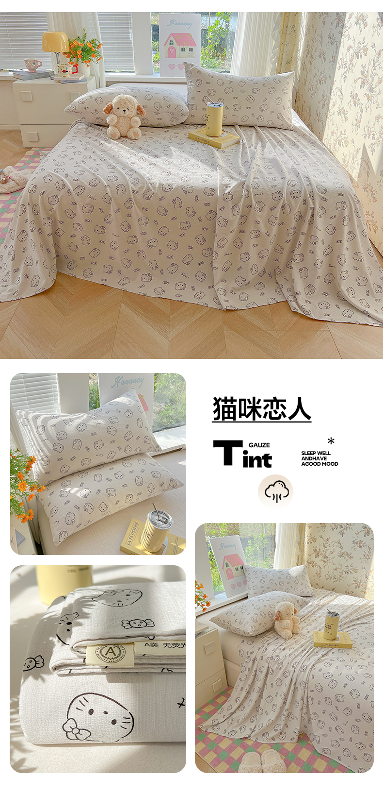 当前位置: 91家纺网 > 商品网购 > 床品套件 > 三件套 > 韩巢家纺 2025新款云感提花双层纱床单被单枕套三件套 猫咪恋人