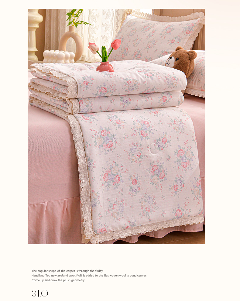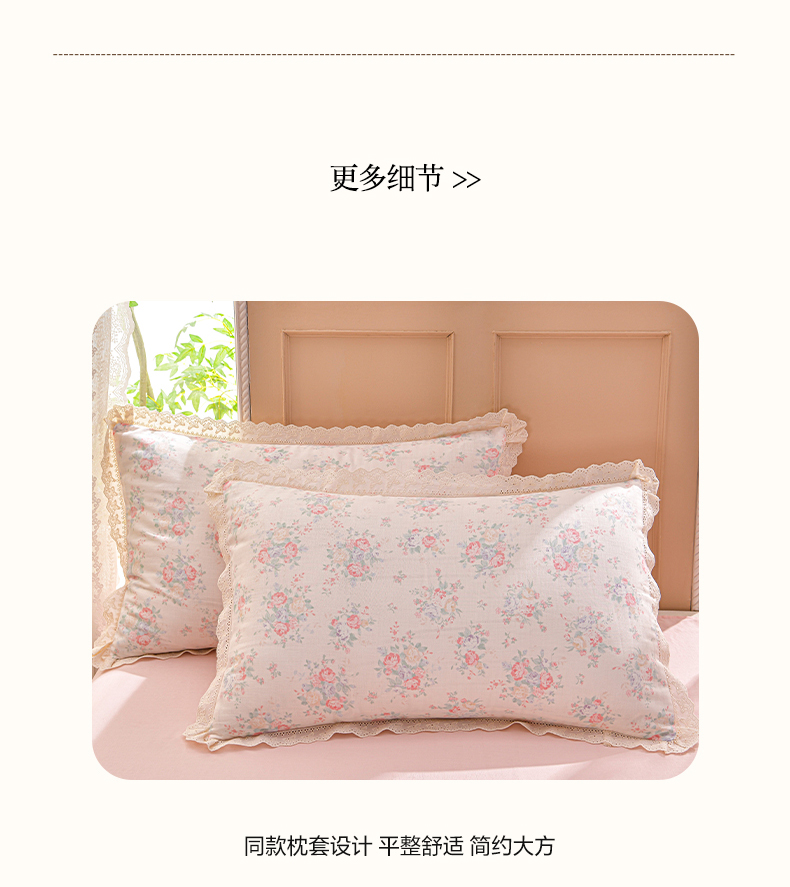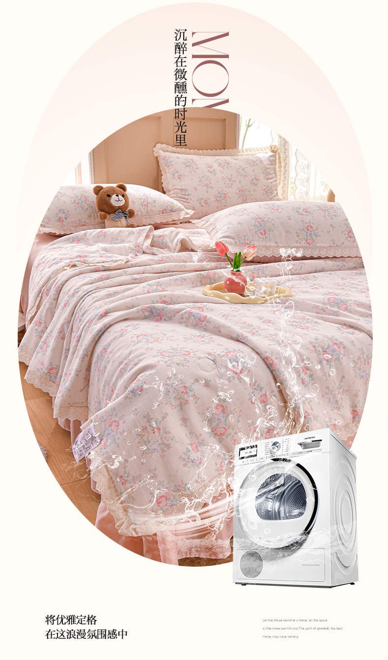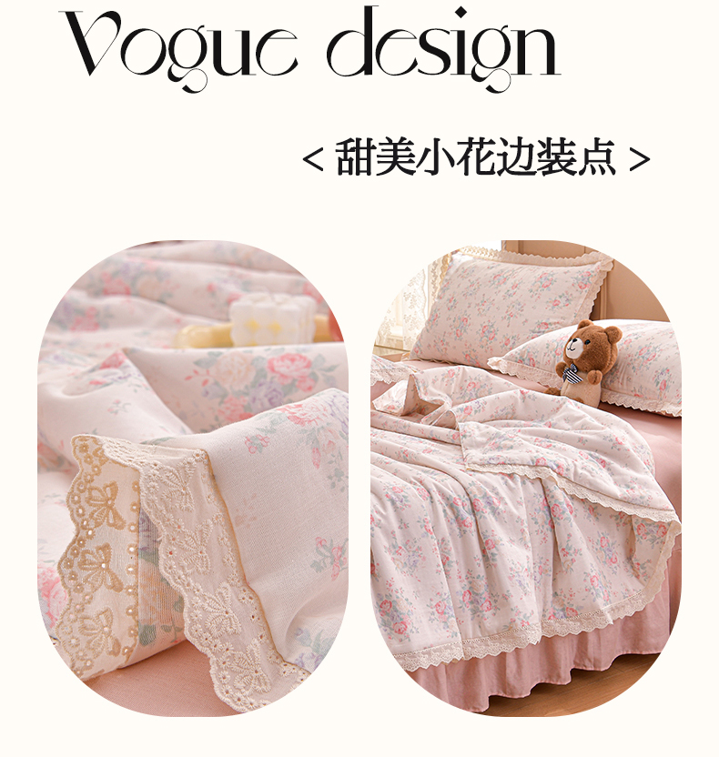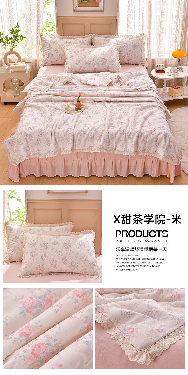 商品名称:绘萱家居 2025新款100%全棉双层纱花边床裙款夏被四件套