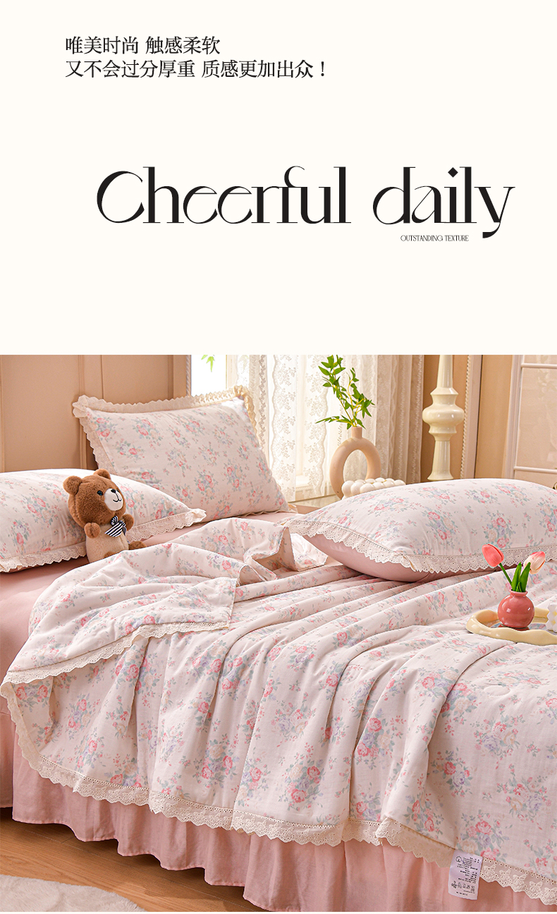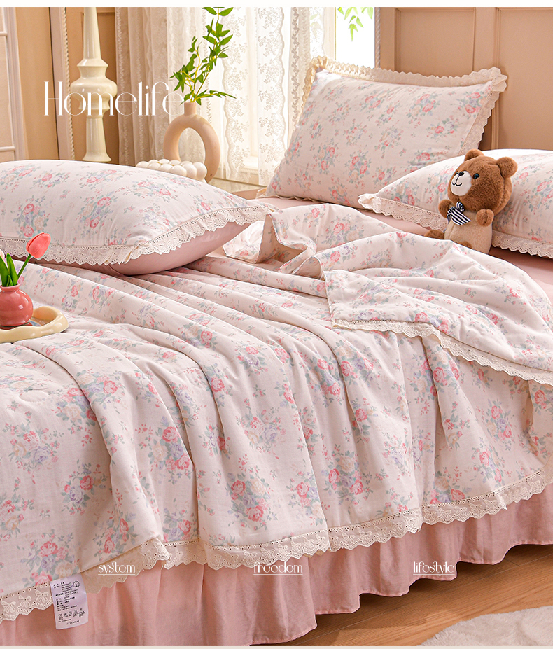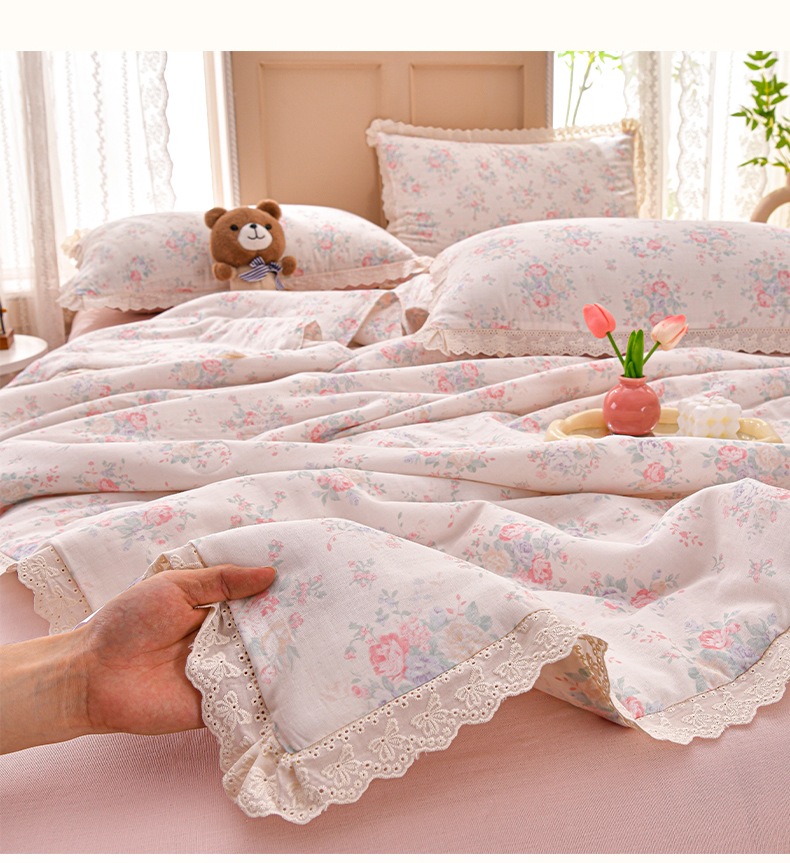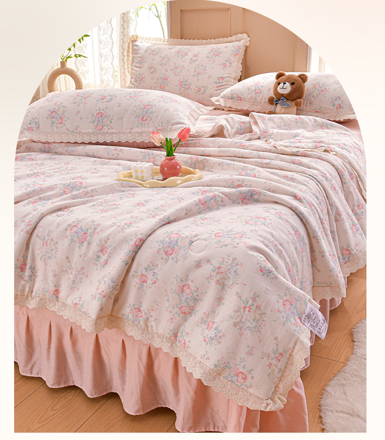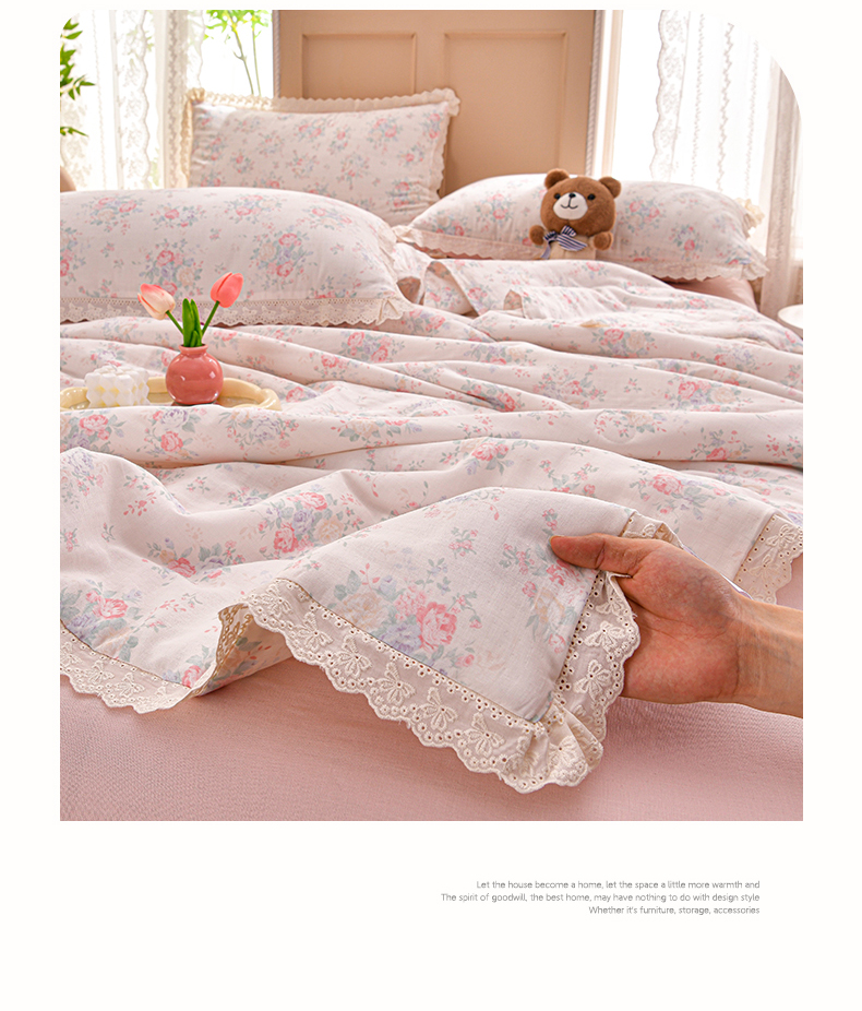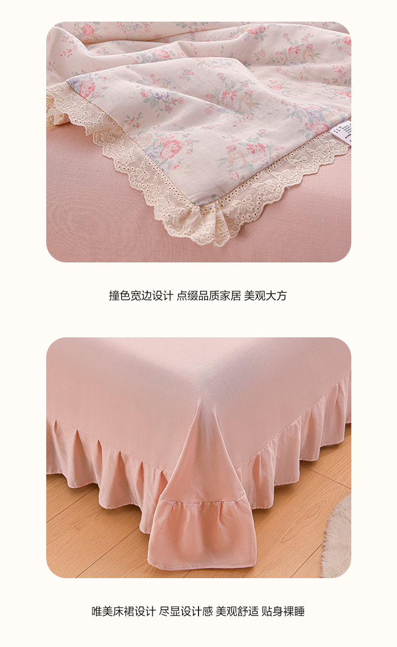 绘萱家居 2025新款100%全棉双层纱花边床裙款夏被四件套