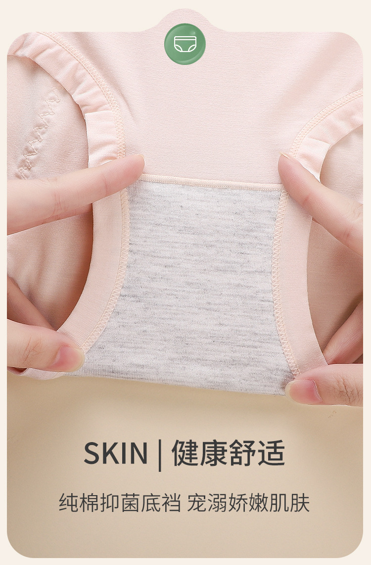 商品名称:良品汇馆 2025新款日式无印女士莫代尔高腰棉质内裤纯色生理期内裤经期高腰内裤放侧漏三角 新款莫代尔-粉色