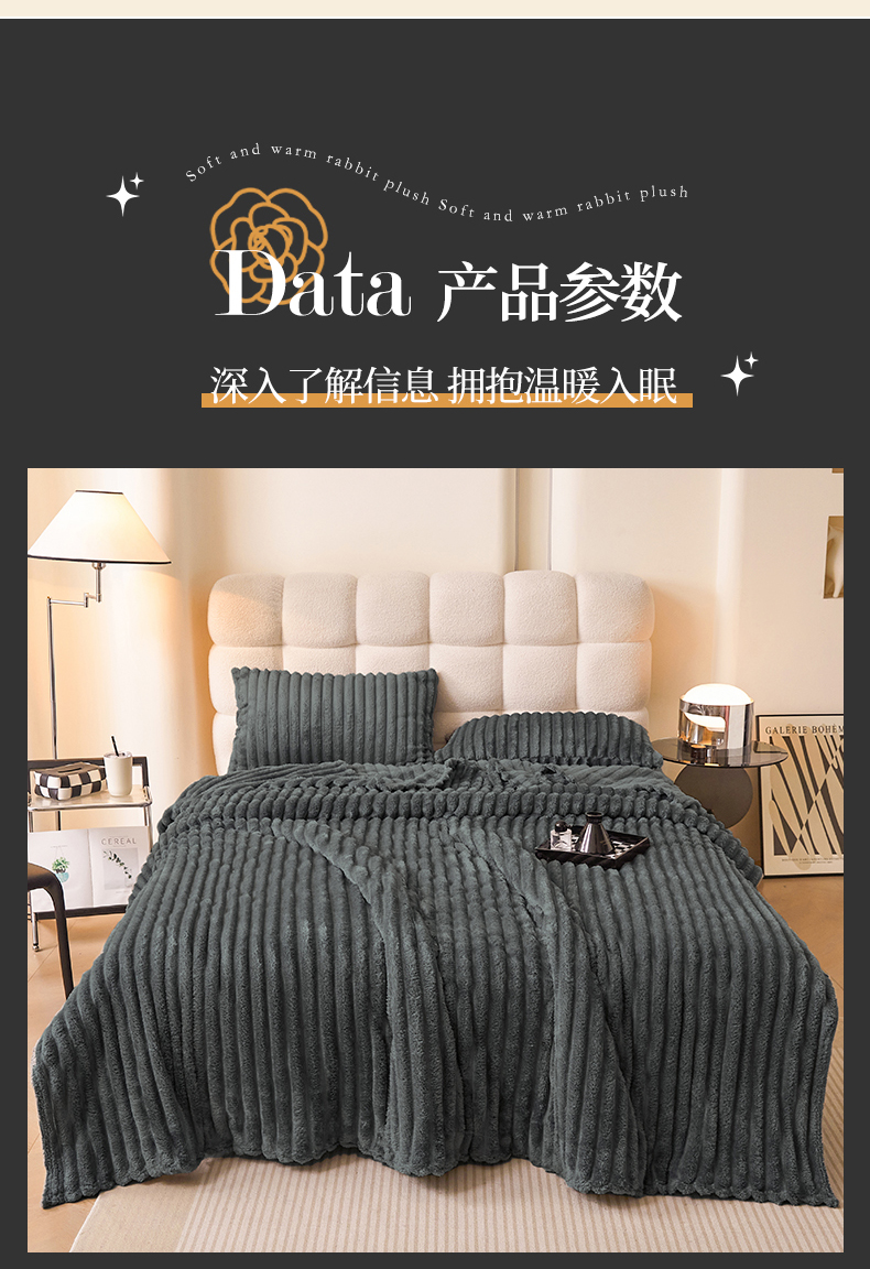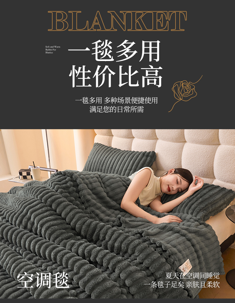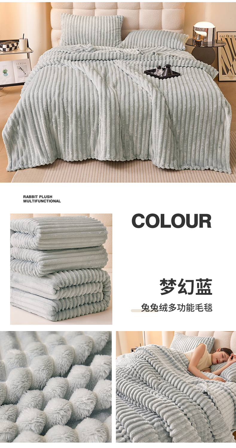 商品名称:(总)合纵跨境工厂 2025新款兔毛绒法兰绒贝贝绒毛毯跨境外贸JIT一件代发TEMU亚马逊希音包过核价抽条毛毯