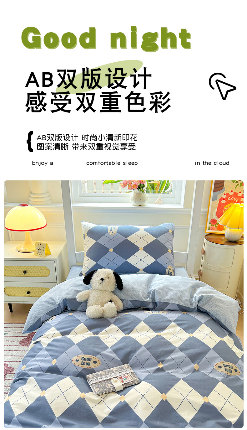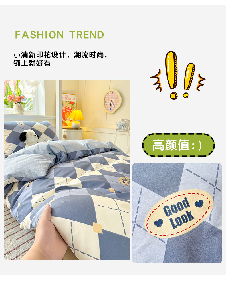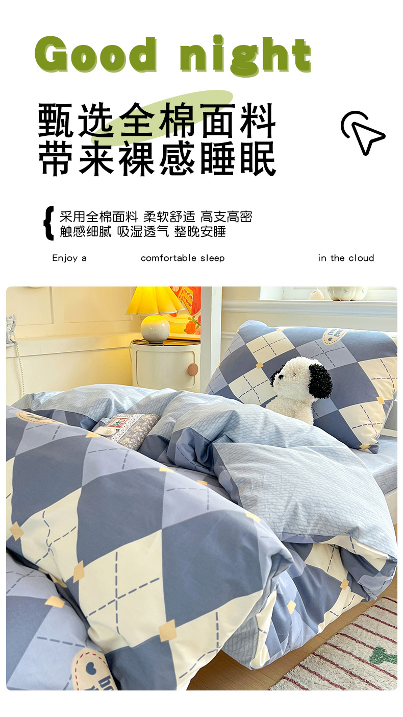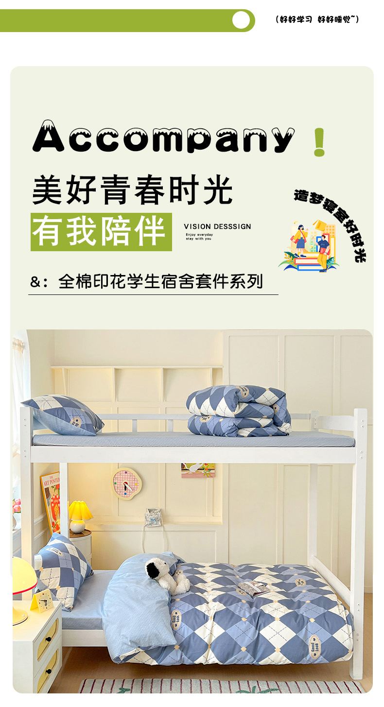 当前位置: 91家纺网 > 商品网购 > 床品套件 > 四件套 > 全棉普通四件套 > 西引力 2025新款全棉印花学生宿舍三件套四件套 英伦蓝