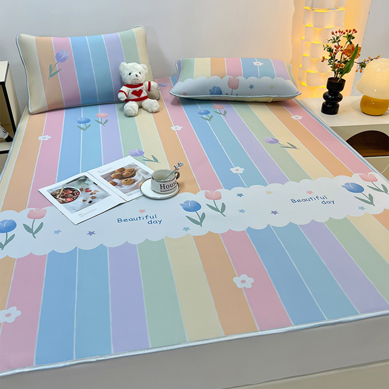 柏薇 2025新款凉感丝中分子印花复合三明治凉席套件 五彩花朵