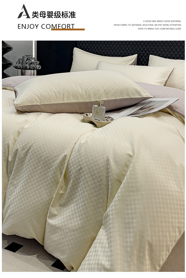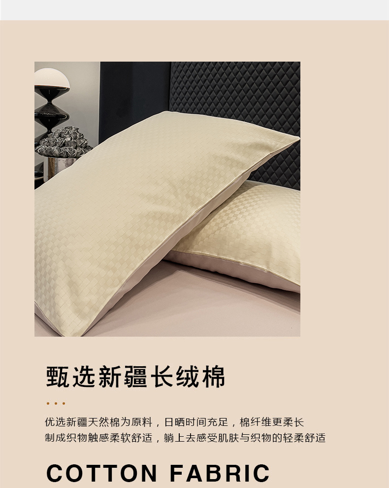 (总)金鑫汇家纺 2024新款长绒棉提花小方格系列四件套单品系列-单枕套