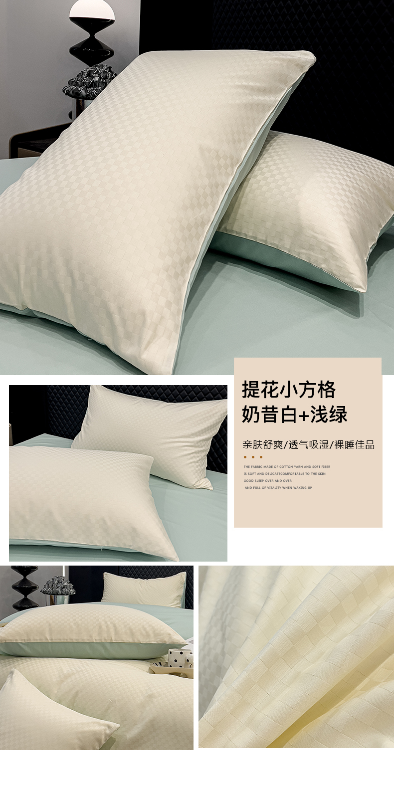 商品名称:(总)金鑫汇家纺 2024新款长绒棉提花小方格系列四件套单品系列-单枕套